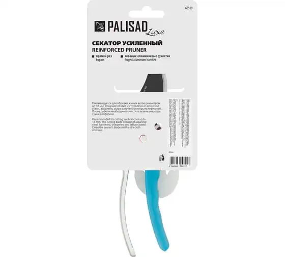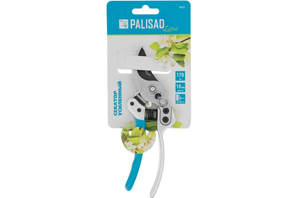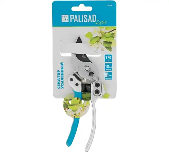 Усиленный секатор прямого реза Palisad LUXE 60529 длиной 170 мм, с нижней рукояткой в ПВХ-оболочке, используется для обрезки живых веток толщиной до 18 мм. Обладает повышенной мощностью благодаря шарниру особой конструкции, увеличивающему усилие сжатия на 10%. Регулировочный винт позволяет изменить плотность смыкания лезвий. Секатор пригодится для работы на загородном участке.