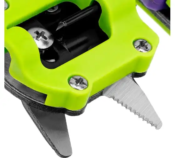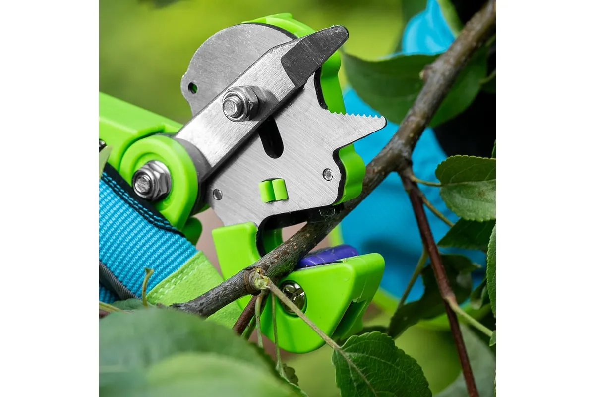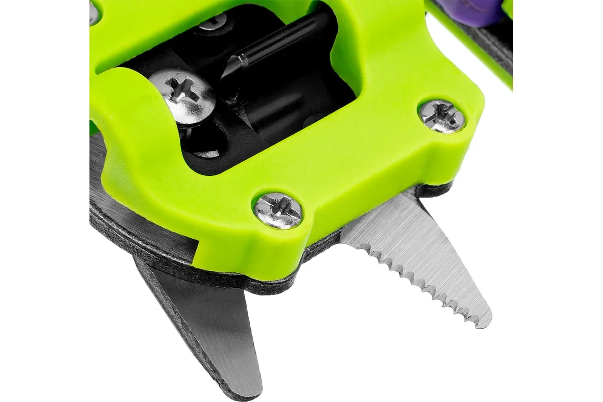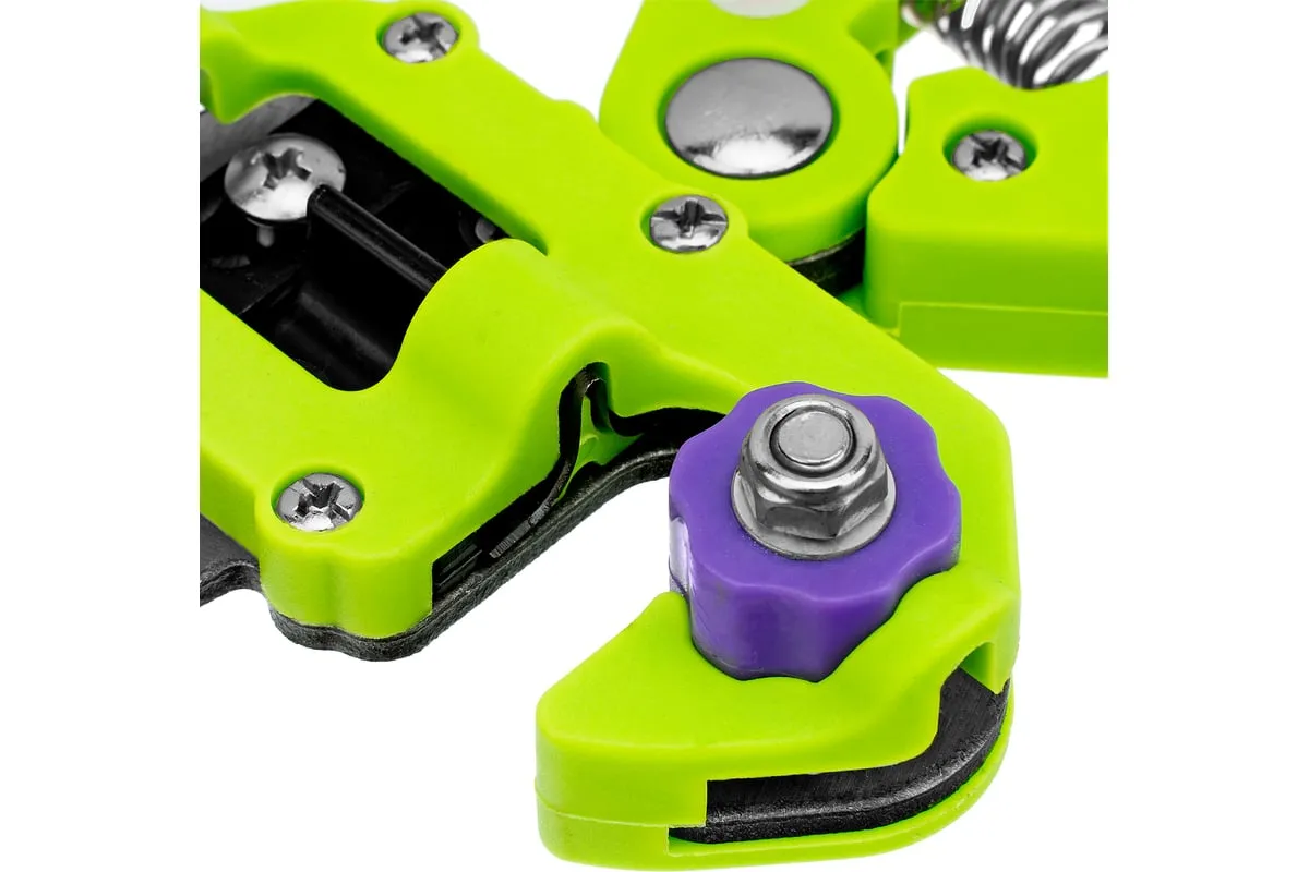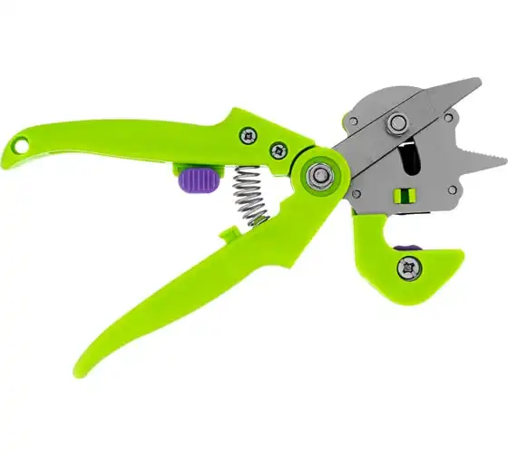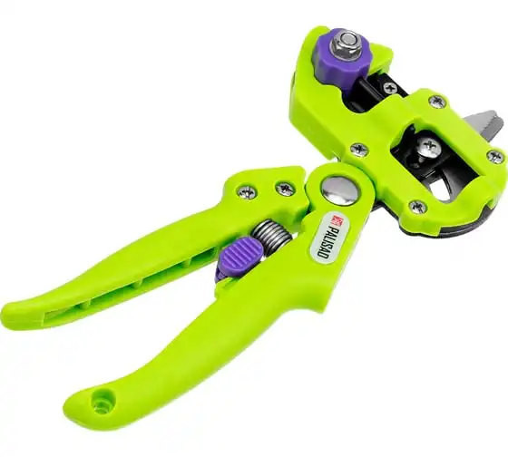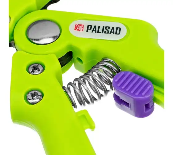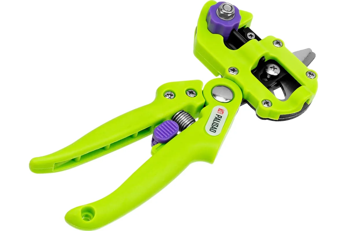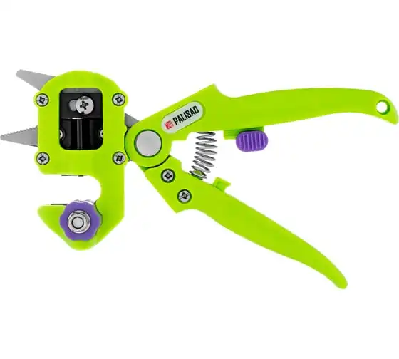 Прививочный секатор Palisad 60502 длиной 215 мм, со сменными ножами, используется для прививки плодовых растений черенком. Фигурные ножи секатора изготовлены из рессорно-пружинной стали, поэтому обладают высоким ресурсом (рассчитаны на 5000 срезов без дополнительной заточки). В комплекте U-образный, V-бразный и Ω-образный ножи, что позволяет работать с черенками различной толщины и плотности. Вырезы, сделанные на подвое и привое, идеально совместимы друг с другом, дополнительная подгонка им не требуется.