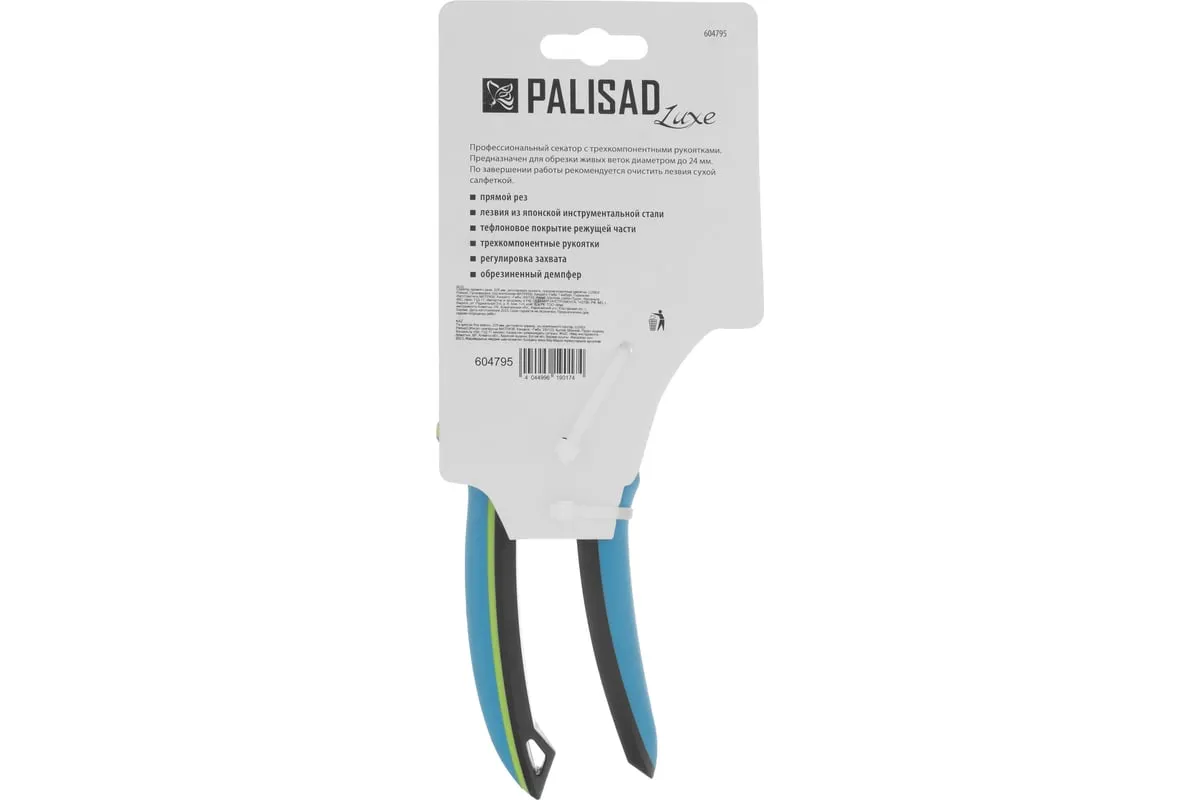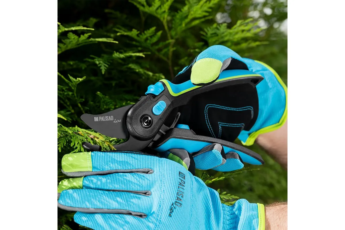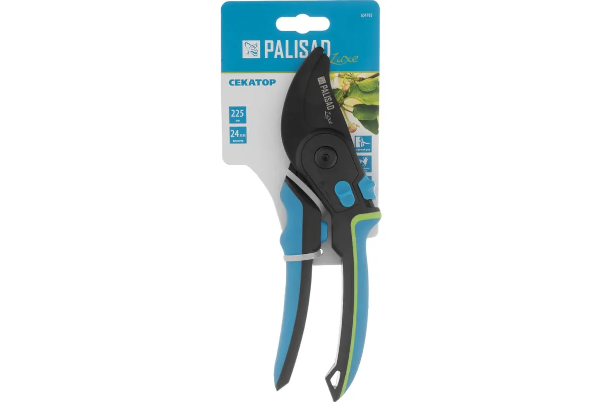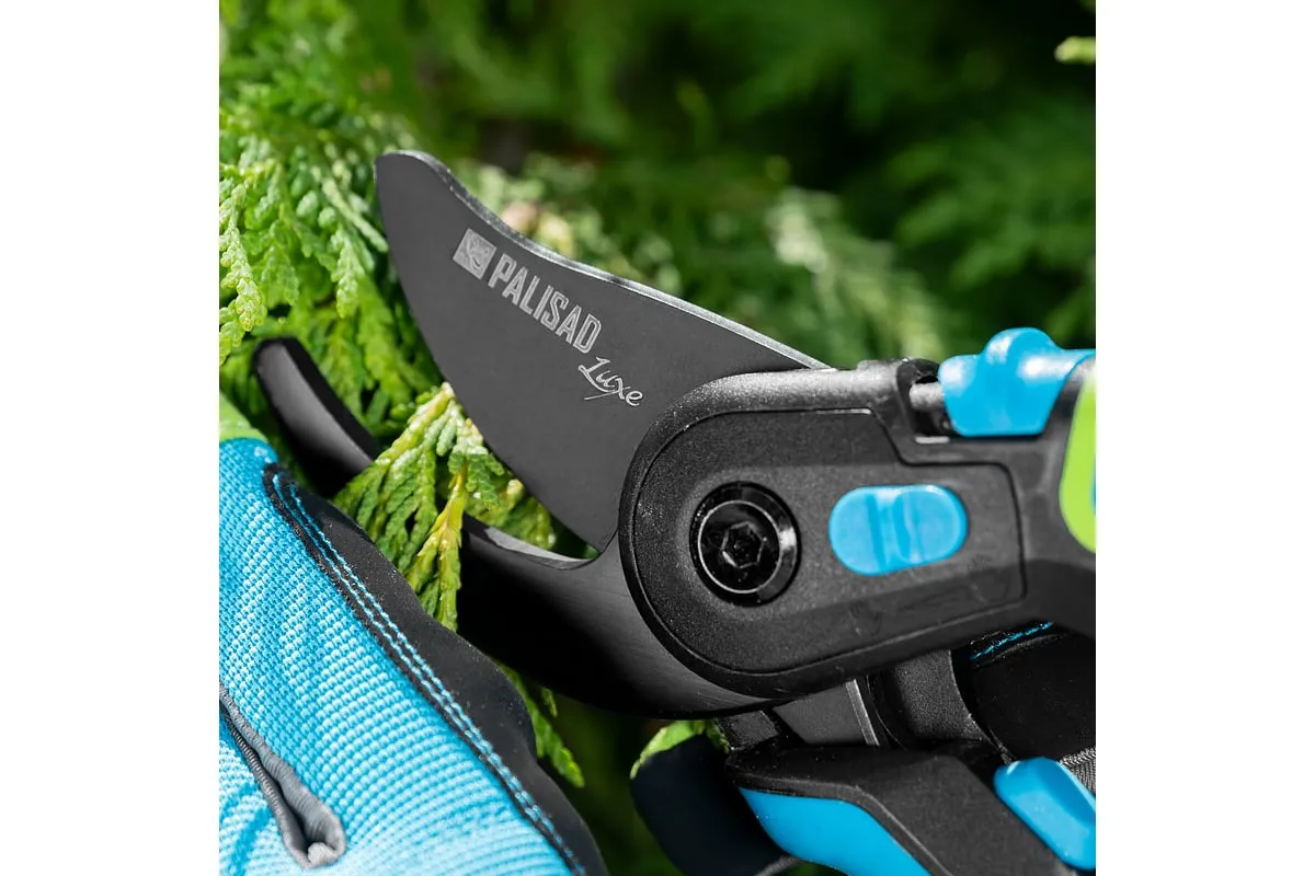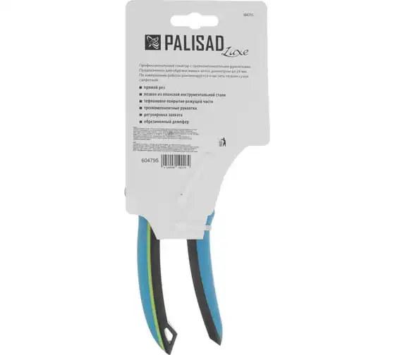 Секатор прямого реза Palisad LUXE 604795 длиной 225 мм, с регулировкой захвата и трехкомпонентными рукоятками, используется для срезания живых веток толщиной до 24 мм. Режущее лезвие перемещается в плоскости, параллельной опорному, поэтому срез получается ровным и чистым, а ущерб для растения сведен к минимуму. Тефлоновое покрытие лезвия уменьшает трение, а шарнир особой конструкции увеличивает силу сжатия на 10%, что позволяет пользователю прикладывать меньше усилий. При помощи винта можно регулировать плотность примыкания лезвий. Секатор будет полезен для ухода за растительностью на загородном участке.