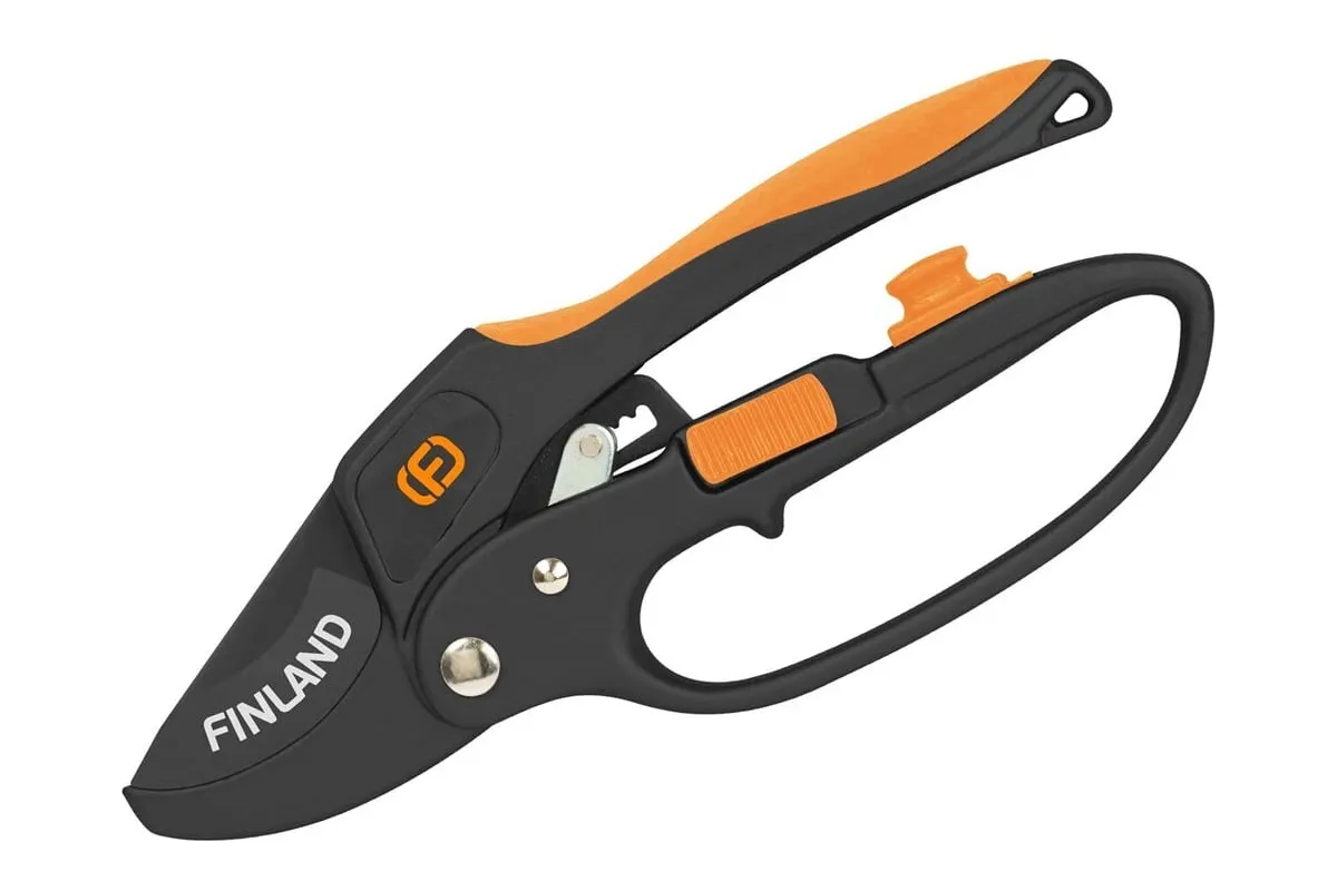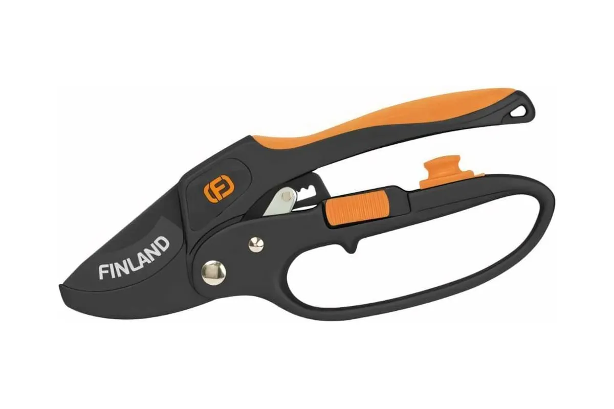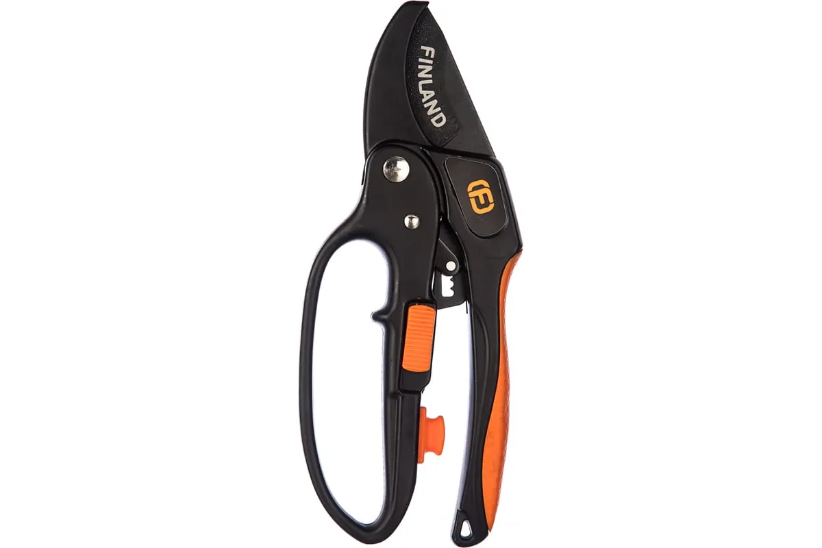 Секатор с храповым механизмом Центроинструмент FINLAND 1611 оснащается встроенной масленкой, которая позволяет успешно работать с сухой древесиной. На одной из рукояток располагается эфес для защиты ладони. Храповый механизм снижает усилие.