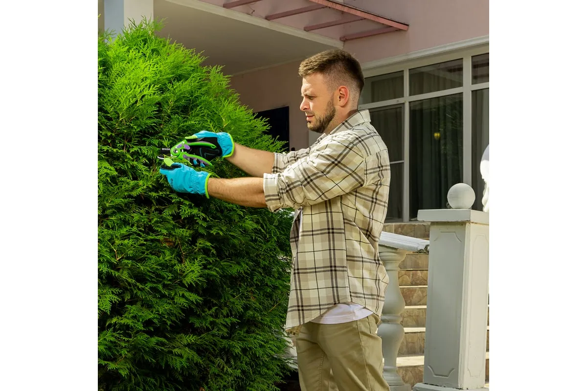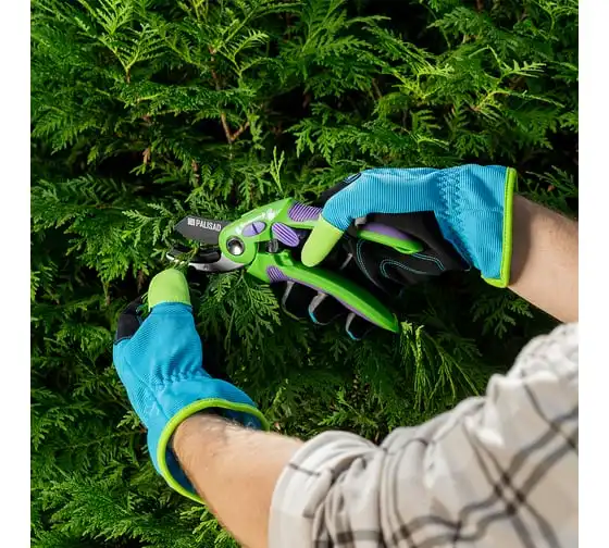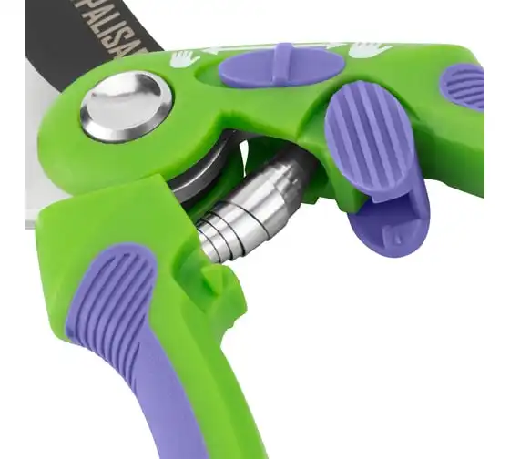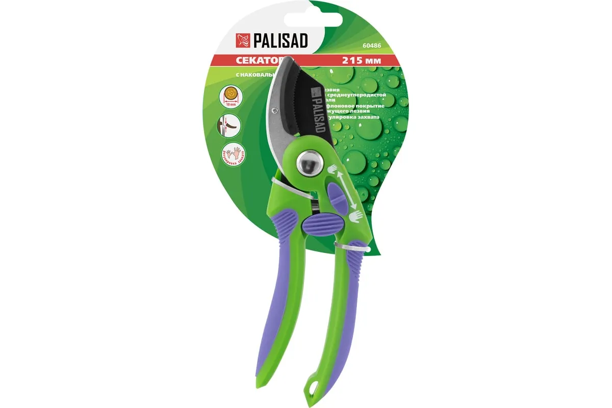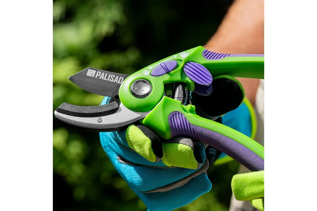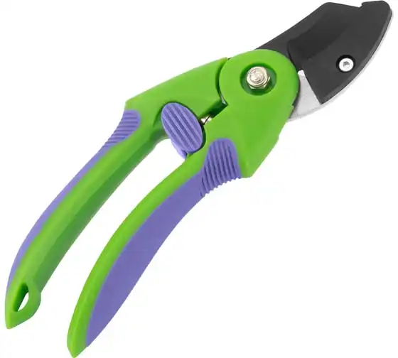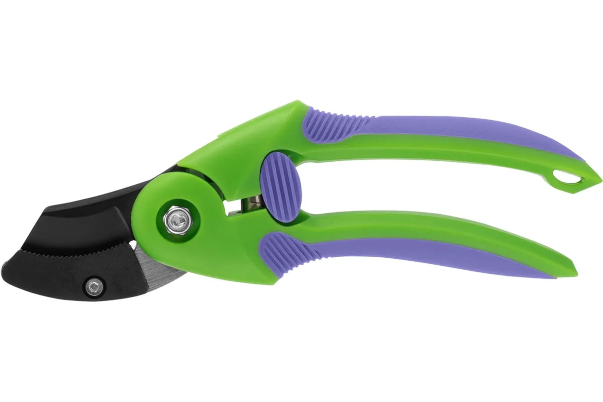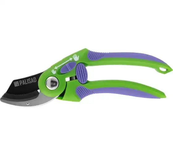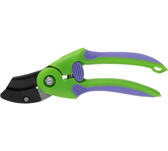 Секатор используется для работы с деревьями и кустарниками. Рукоятка инструмента имеет малый вес, благодаря чему не устает рука во время работы. Опорная наковаленка изделия хорошо удерживает ветку во время работы.