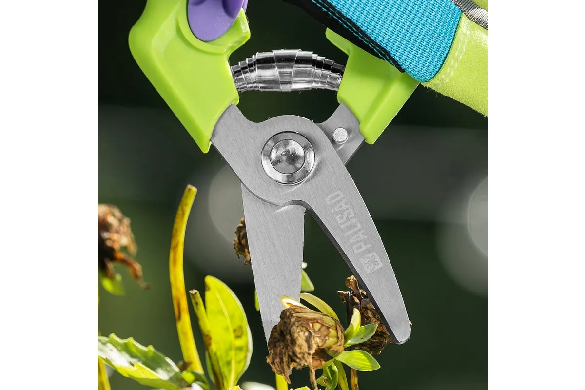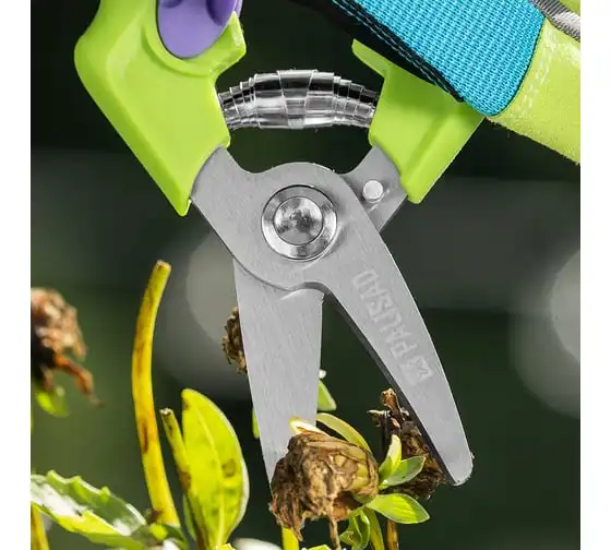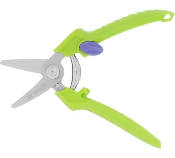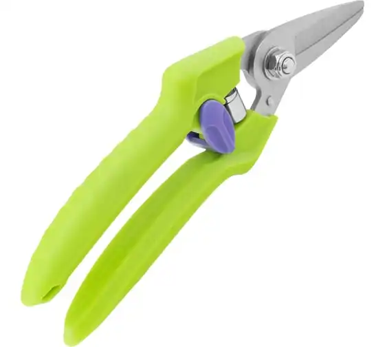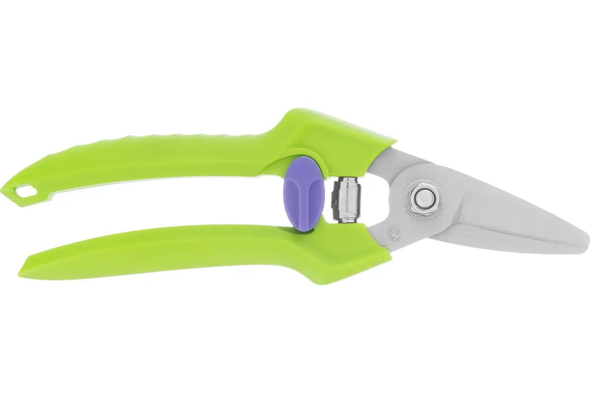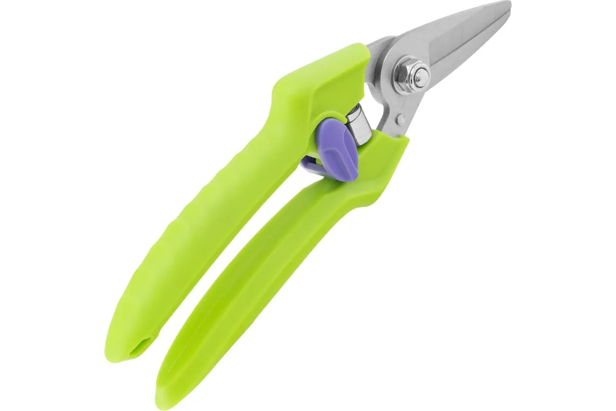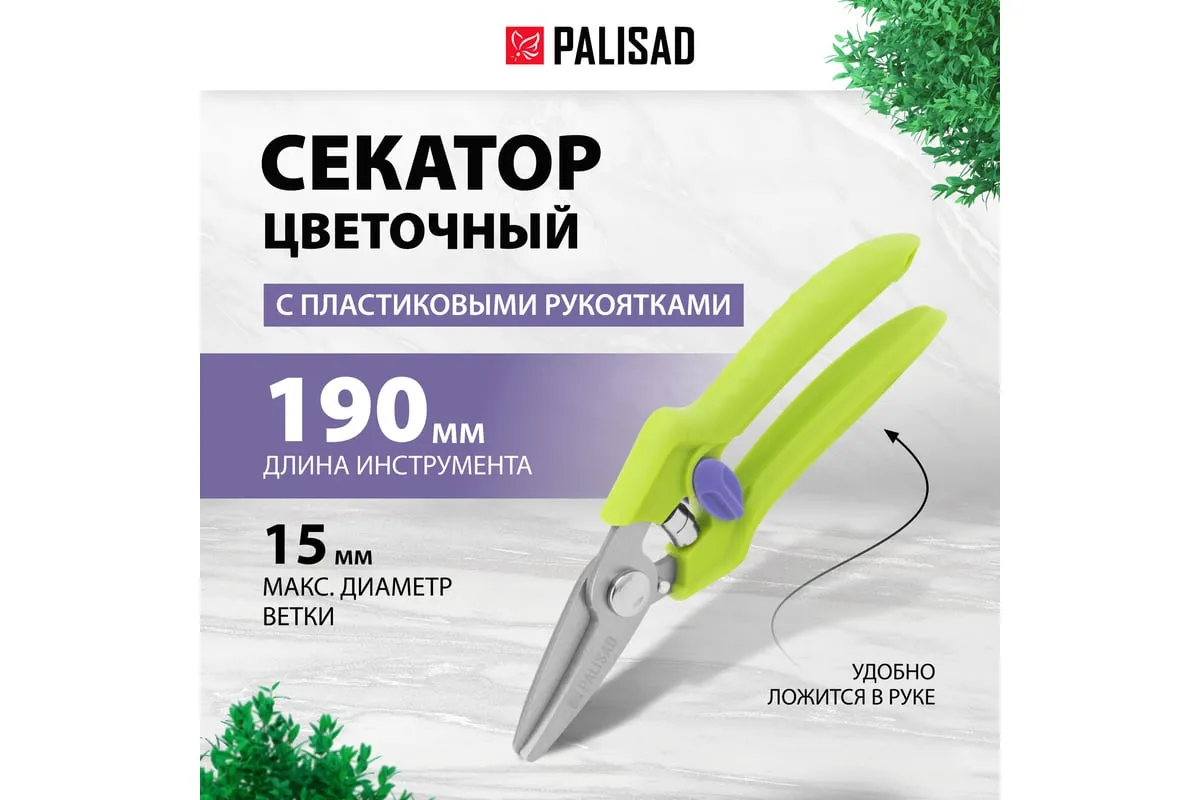 Цветочный секатор Palisad 60455 длиной 190 мм, с пластиковыми рукоятками, используется для обрезки цветов и молодых побегов толщиной до 15 мм. Применяется при выполнении хозяйственных работ: разрезании подвязочного материала, ткани и картона, а также решении других задач. Подходит для создания бонсай и топиарных фигур. Инструмент будет полезен для ухода за садом, пригодится также в быту.