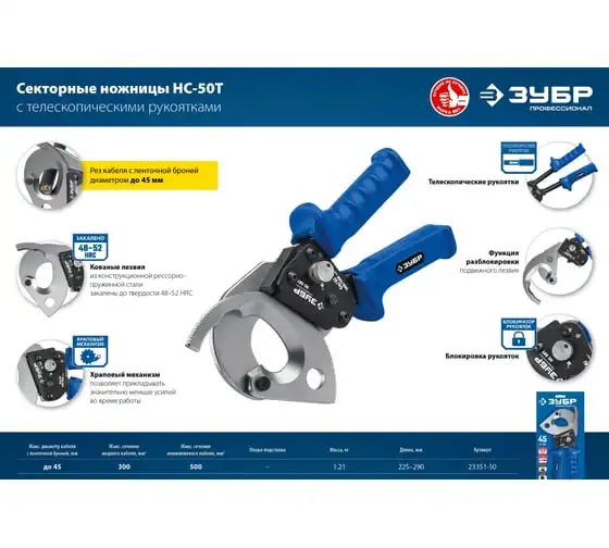 Секторные ножницы ЗУБР Профессионал НС-50T 23351-50 представляют собой надежный инструмент.