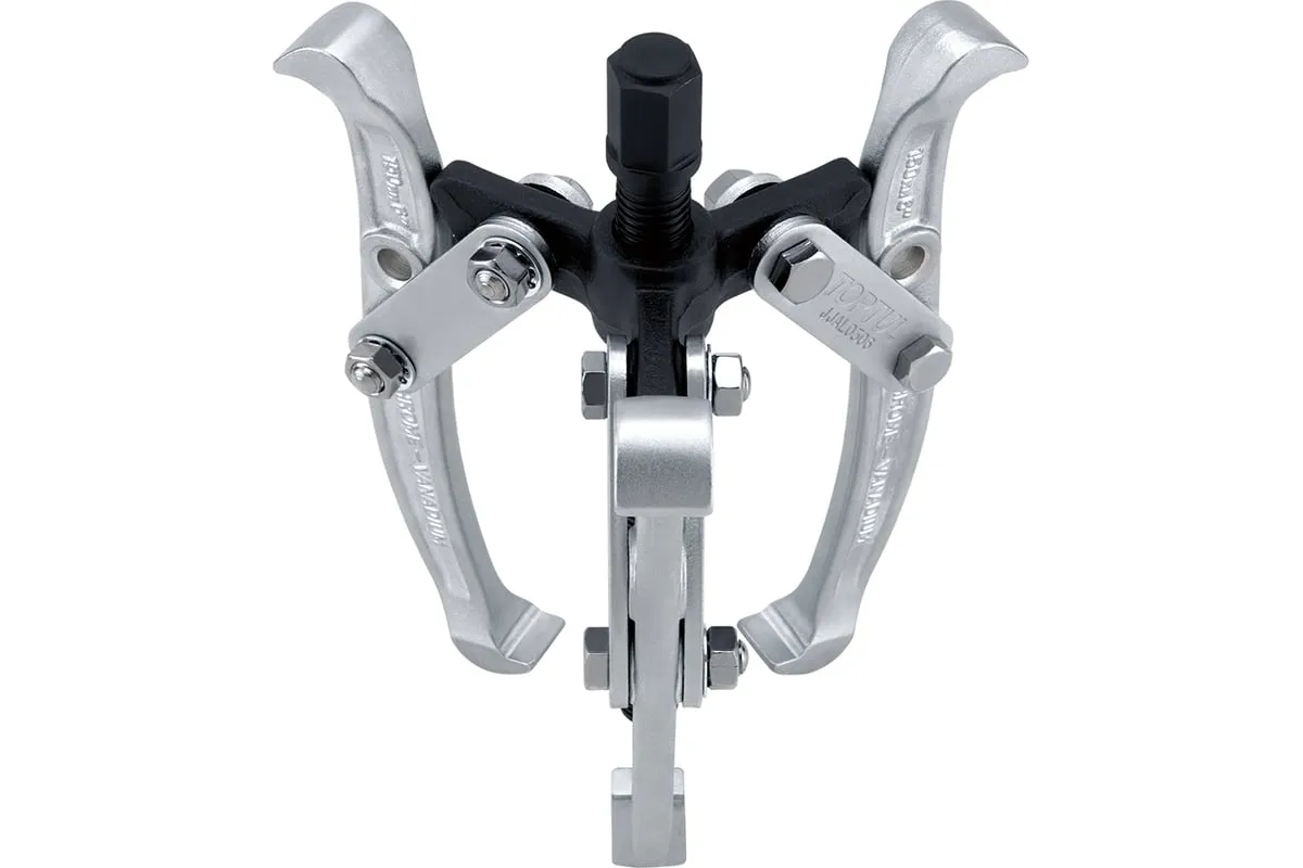 Захваты съемника могут быть перевернуты, чтобы крепко захватывать внутри или снаружи шестерни или детали.