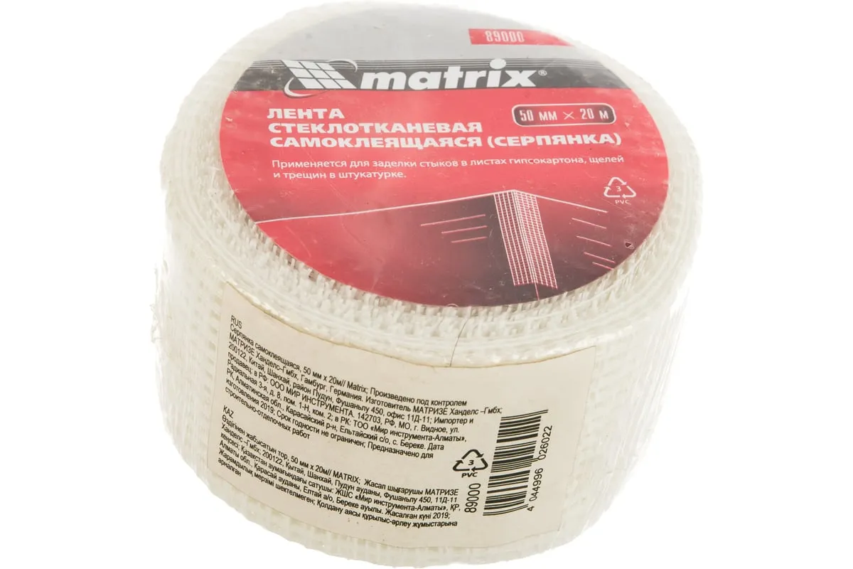 Серпянка самоклеящаяся MATRIX 89000 представляется собой стеклотканевую ленту с клейким внутренним слоем. Используется для армирования швов, трещин на стенах или потолке. Отлично подходит для применения перед покраской или поклейкой обоев.