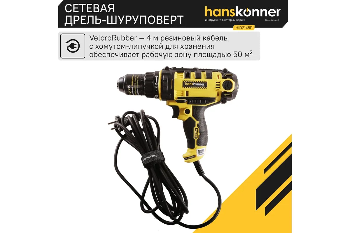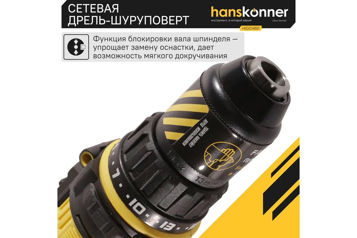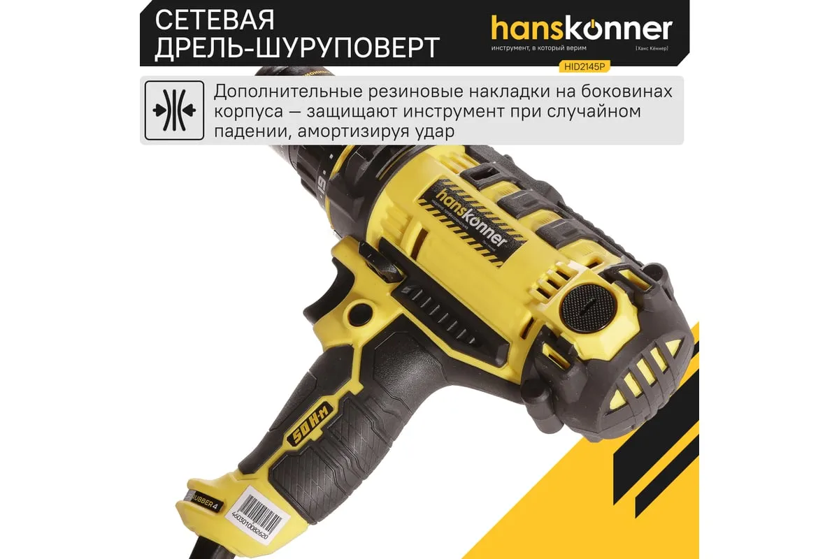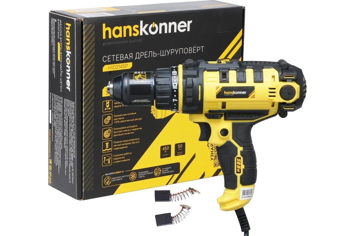 Hanskonner HID2145P – мощный универсальный двухскоростной сетевой шуруповерт. Благодаря повышенным надежности и ресурсу отлично подойдет, как для домашних работ, так и для активного применения в условиях мастерских, ремонтных баз, стройплощадок, станций сервисного обслуживания и т д. Модель имеет современный дизайн и оптимальную компоновку со смещенной вперед рукоятью, что обеспечивает нейтральный центр тяжести и положительно сказывается на удобстве использования. Прорезиненные накладки на элементах корпуса и рукояти способствуют надежному хвату, а также обладают защитными функциями. Шуруповерт оснащен производительным 450 Вт электромотором и в тандеме с мощным планетарным механизмом демонстрирует высокие показатели по крутящему моменту (макс. крутящий момент 45 Н м), позволяя эффективное использование при работах с крепежом средней и большой длины. Модель имеет две скорости: режим пониженных оборотов (0 – 400 об / мин) предназначен для работ с крепежом, режим повышенных оборотов (0 – 1500 об / мин) – для сверления отверстий в различных материалах. Благодаря муфте регулировки усилия c 22 фиксированными положениями, значение момента затяжки на валу шпинделя можно изменять в широком диапазоне –это дает возможность максимально гибко подстраивать инструмент применимо к используемым крепежным элементам и их размеру, а также, материалу заготовки.