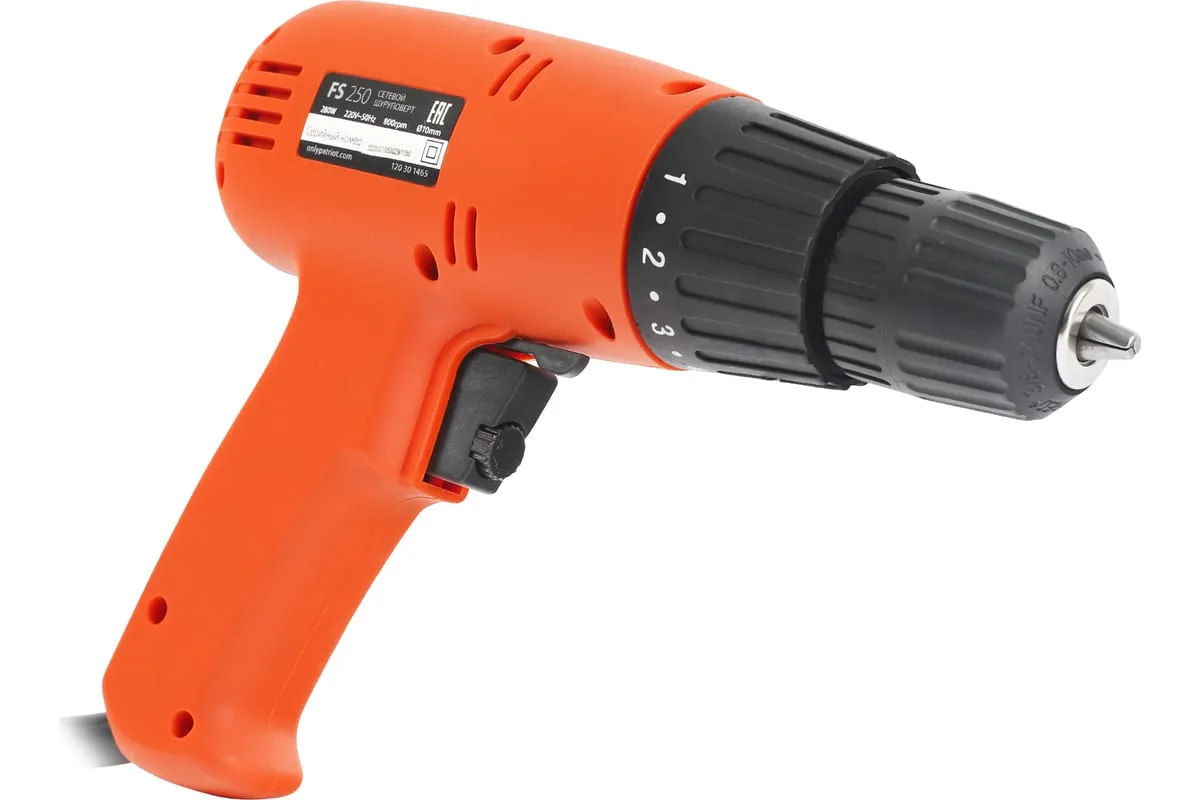 Сетевая дрель-шуруповерт PATRIOT FS 250 120301465 снабжена быстрозажимным патроном, что способствует простой смене оснастки. Скорость вращения регулируется специальным колесиком на клавише "Пуск", что обеспечивает удобство выполнения некоторых операций. Предусмотрено 16 ступеней крутящего момента, что позволяет подбирать необходимое значение под конкретный материал.