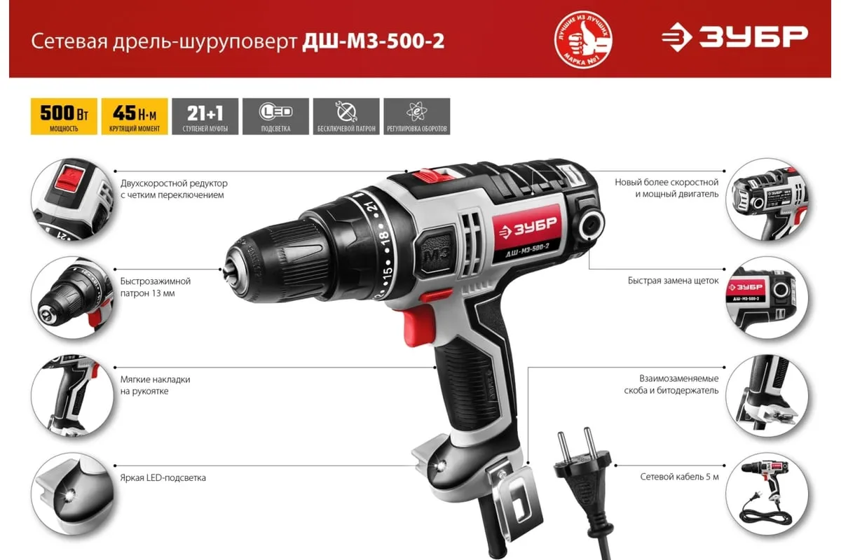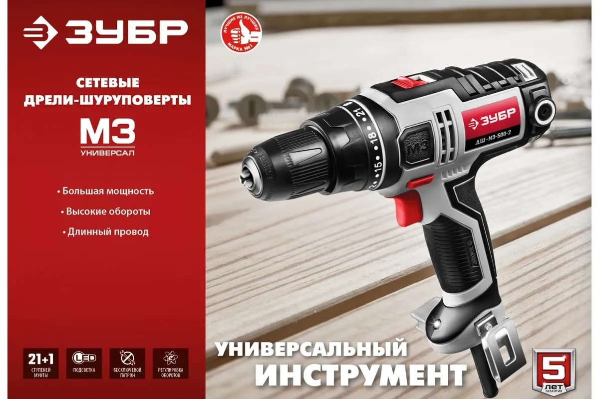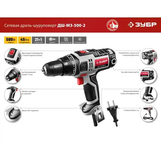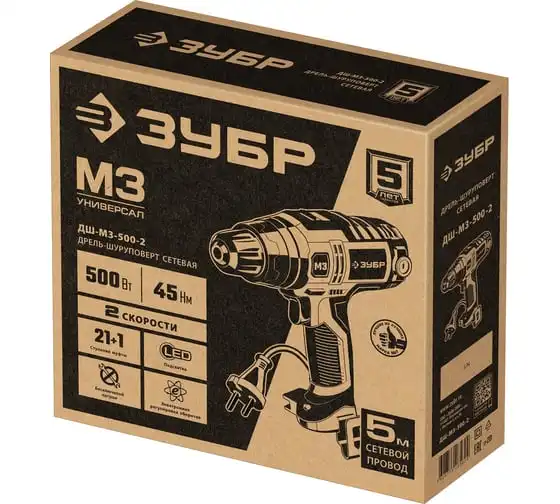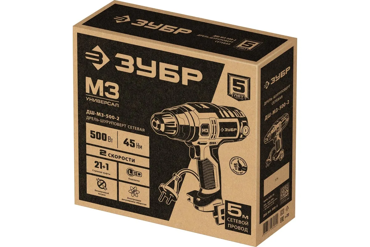 Сетевая дрель-шуруповерт ЗУБР ДШ-М3-500-2 служит для заворачивания/выкручивания шурупов, винтов и саморезов, а также сверления отверстий. Характеризуется широкой функциональностью и простотой в работе.
