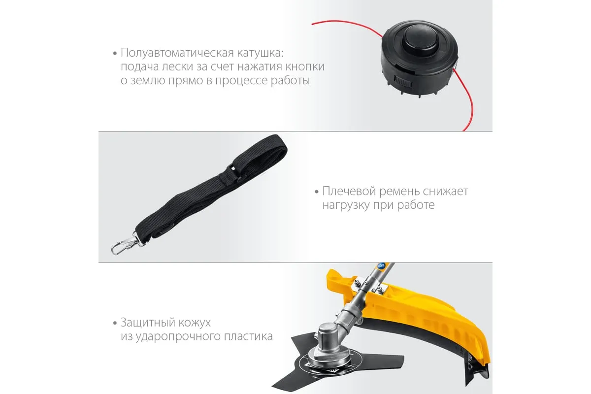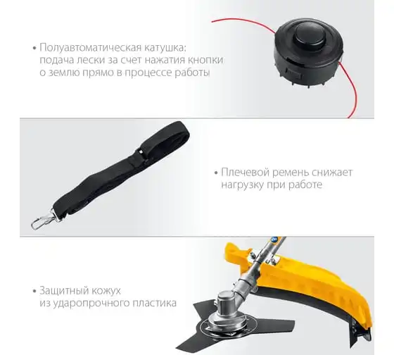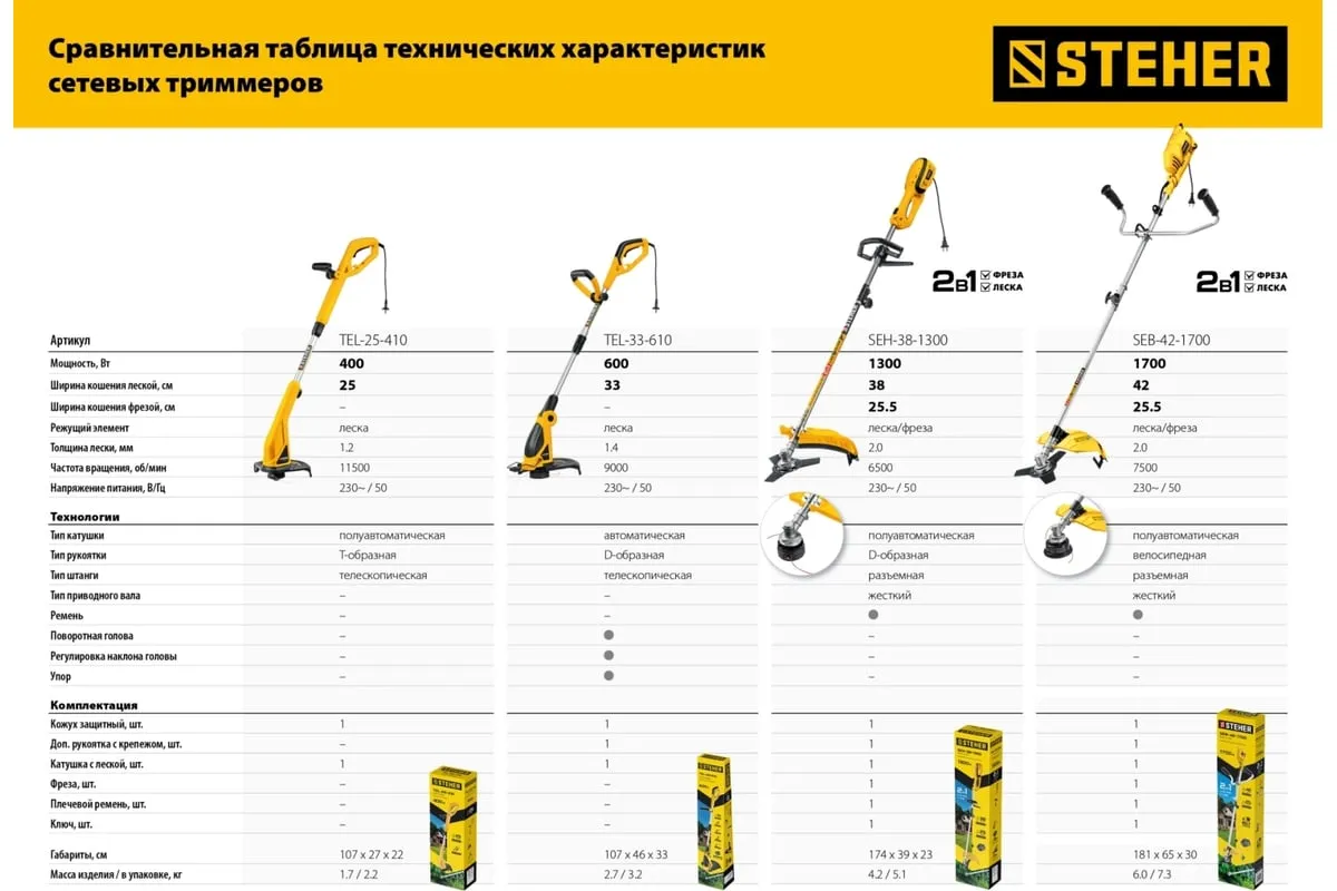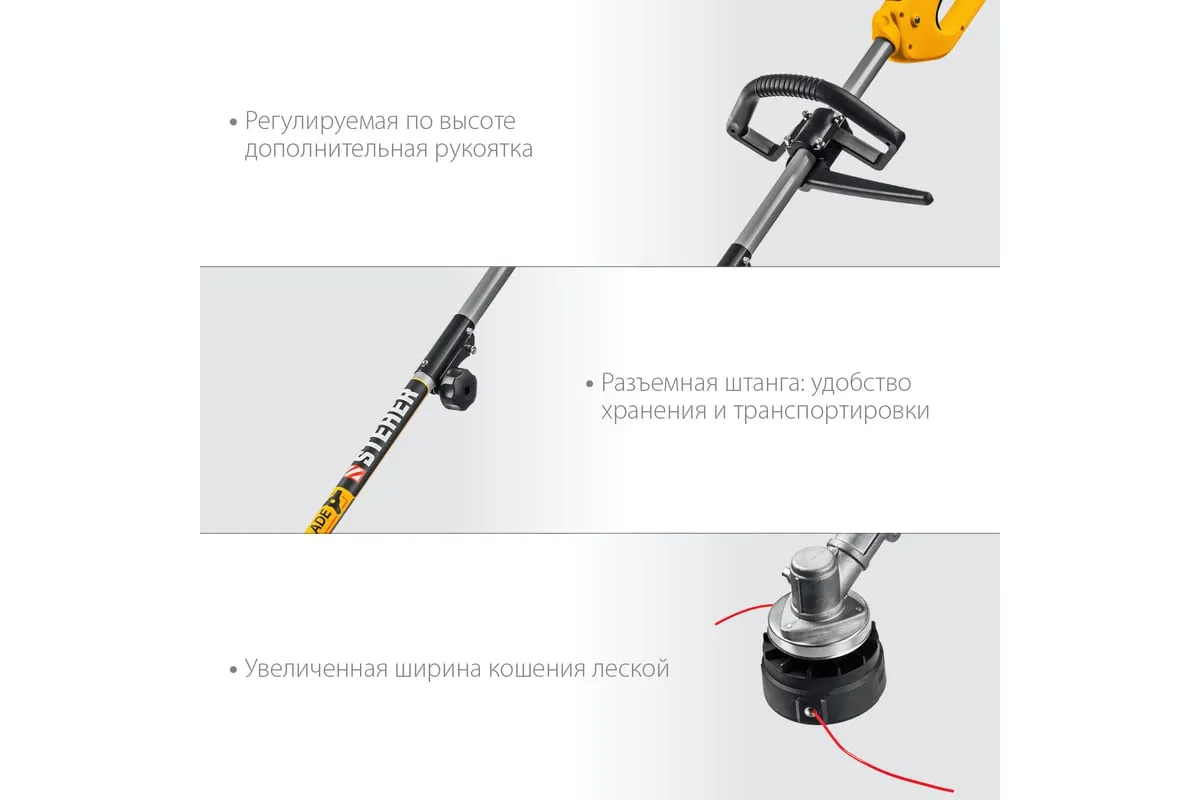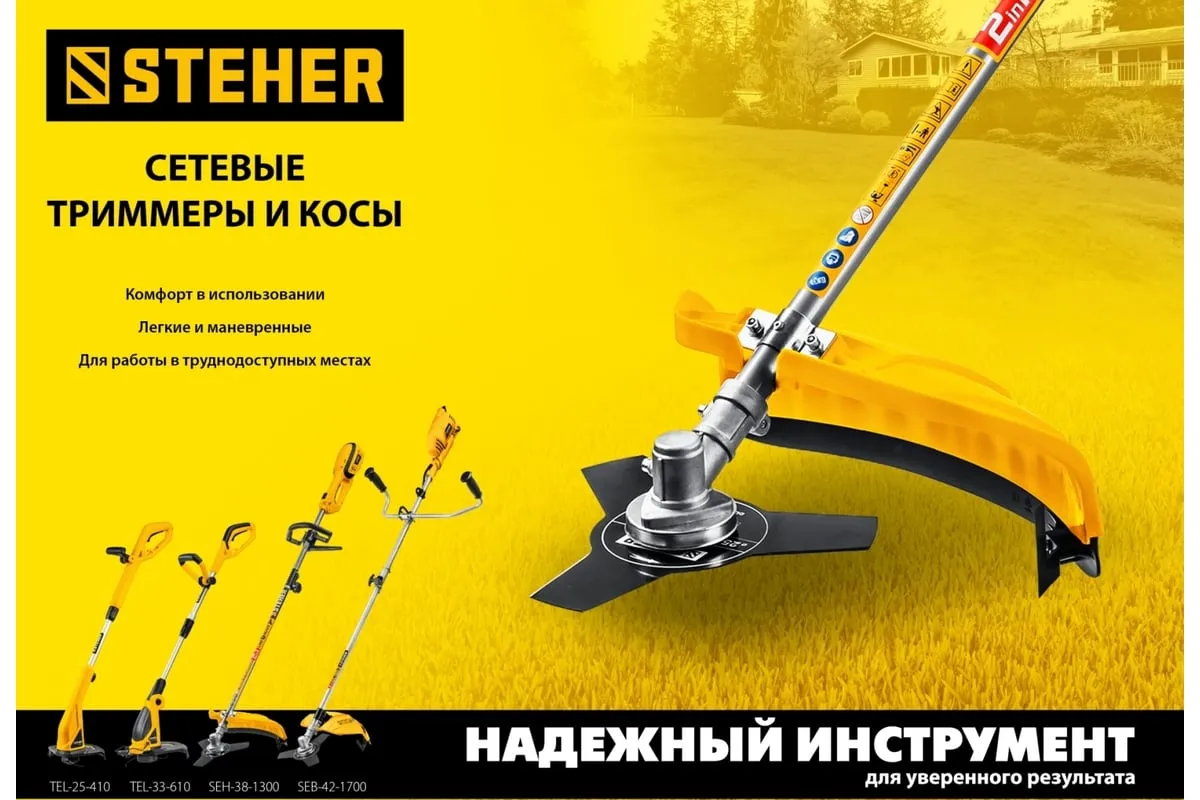 Сетевая коса STEHER SEH-38-1300 - универсальный инструмент на участке. Способна заменить газонокосилку и триммер, так как оснащается катушкой с леской (для мягкой растительности) и ножом (для грубой растительности). Большая мощность двигателяпозволяет косить довольно густую и грубую растительность, а небольшие размеры - добраться до самых труднодоступных мест.