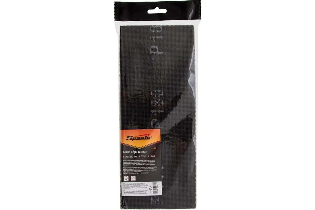 Абразивная сетка Sparta 751325, 115 х 280 мм, с зернистостью P 180, 10 шт. в упаковке, предназначена для чистовой обработки шпаклеванных, деревянных и металлических поверхностей. Среднезернистый абразив P 180 снимает тонкий слой материала и позволяет подготовить поверхности к окрашиванию или поклейке обоев, удалить лак, краску, заусенцы и ржавчину. Полотно крепится на брусок или сеткодержатель. Прочное гибкое стекловолокно, из которого изготовлена сетка, обеспечивает ее износостойкость и долговечность.