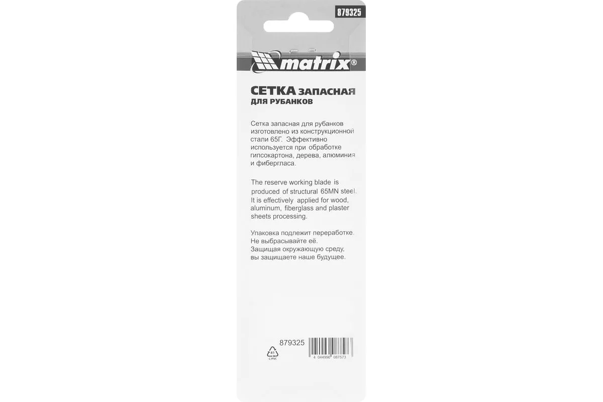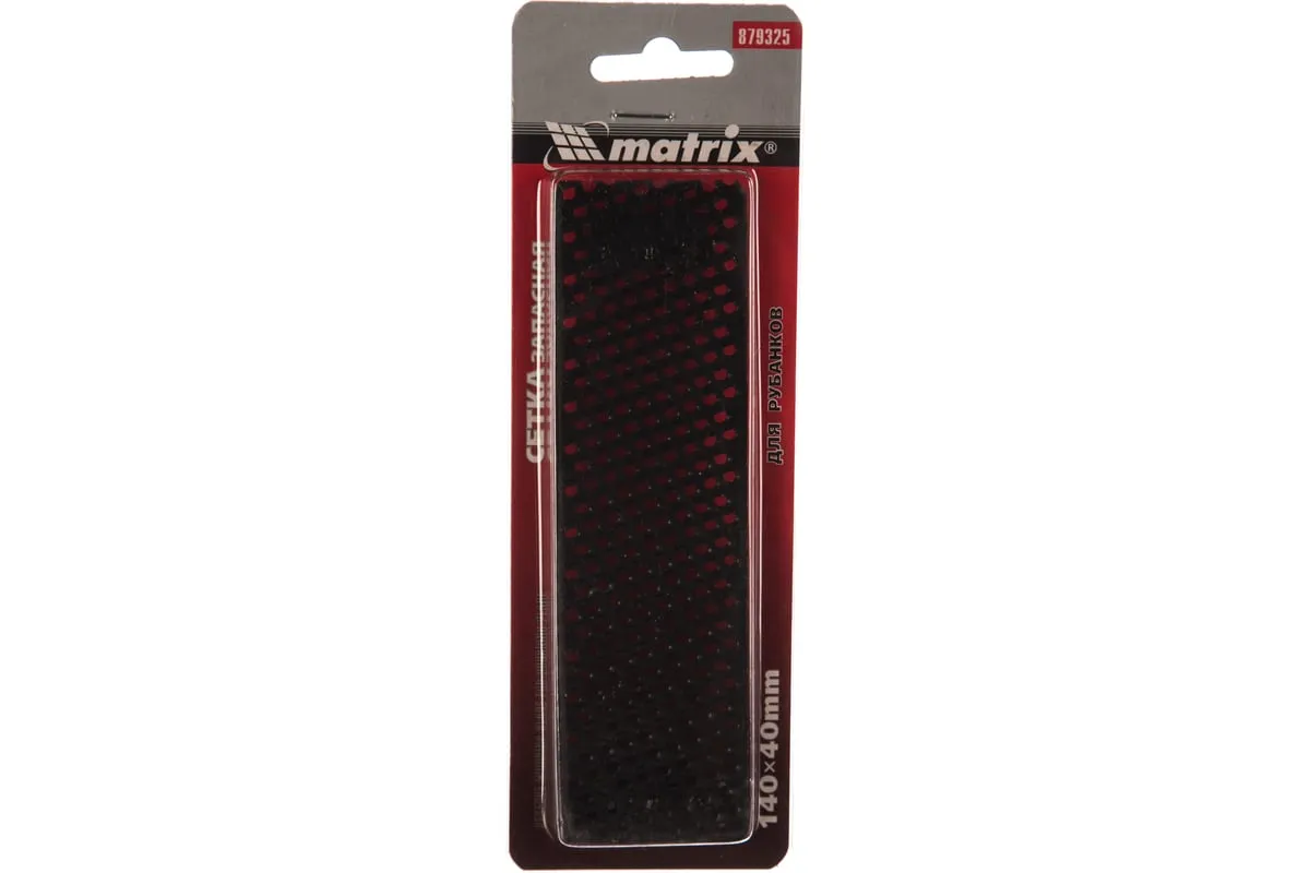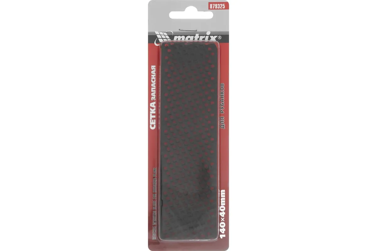 Запасная сетка Matrix 879325 размером 140 х 40 мм — сменное полотно к рубанкам для гипсокартона 87906, 87910. Используется для выравнивания кромок гипсокартонных листов, а также для обработки фибергласовых, пластмассовых и деревянных поверхностей. Будет полезна во время ремонтных и отделочных работ.