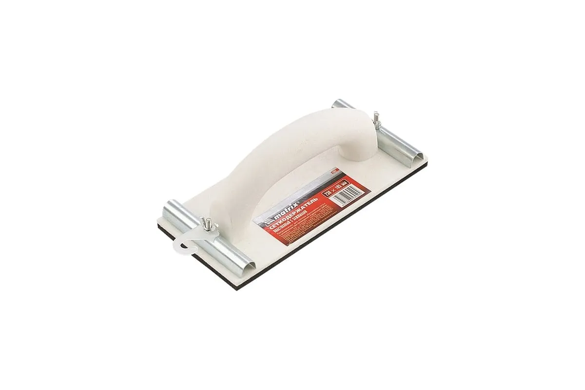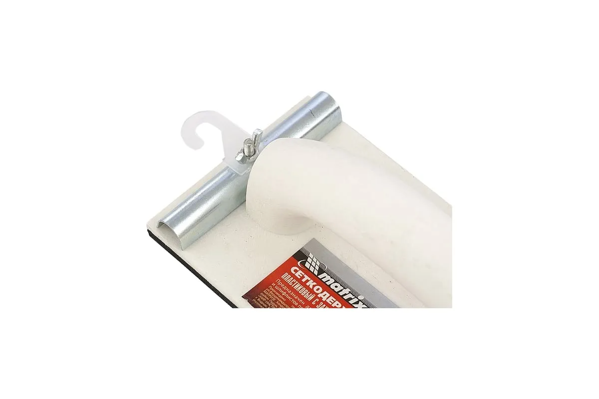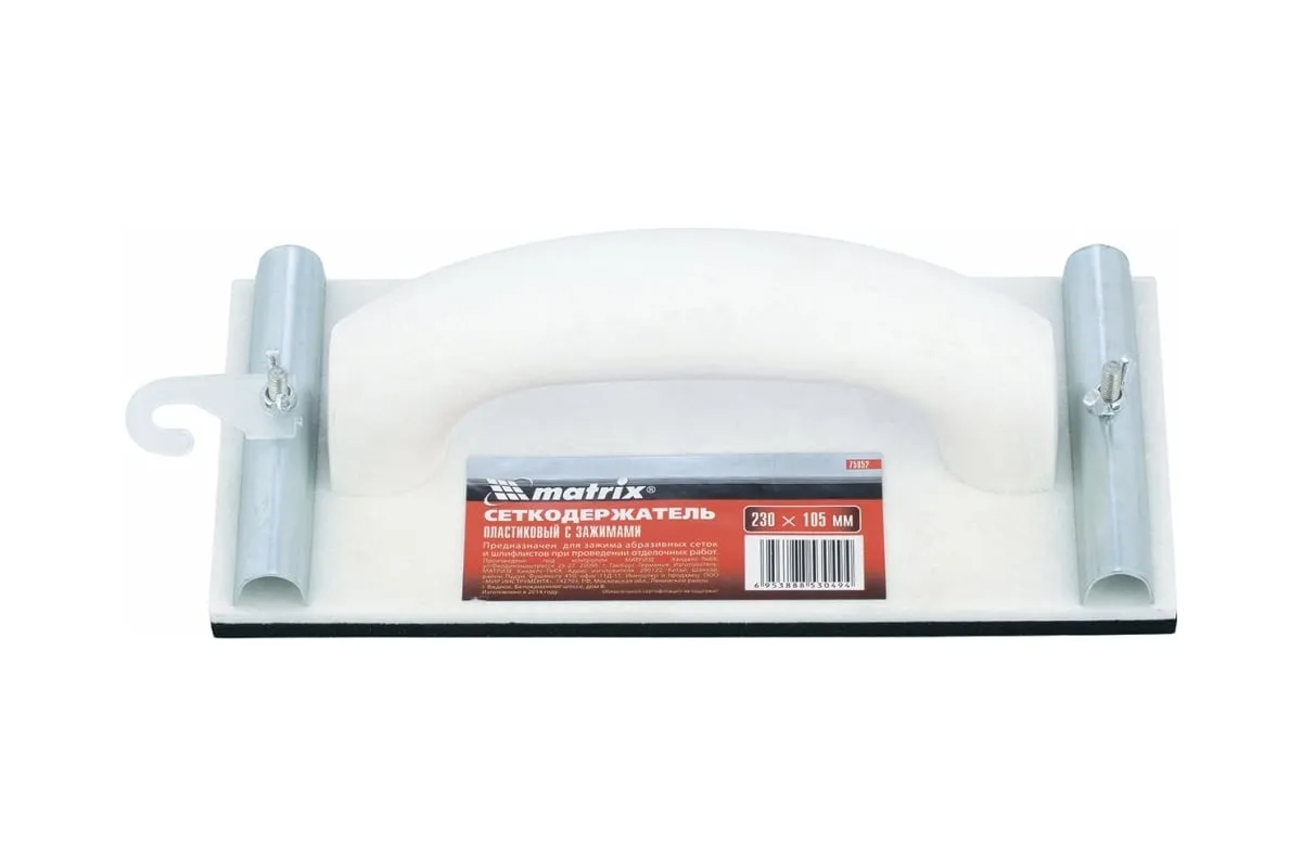 Сеткодержатель Matrix 75852, 230 х 105 мм, пластиковый с зажимами, используется для ручного шлифования деревянных, шпатлеванных, металлических, пластмассовых и прочих твердых поверхностей. Сеткодержатель фиксирует абразивную стеклосетку или шлифлист и позволяет удалять старые отделочные покрытия, подготавливать поверхность под покраску, а также выполнять чистовую обработку.