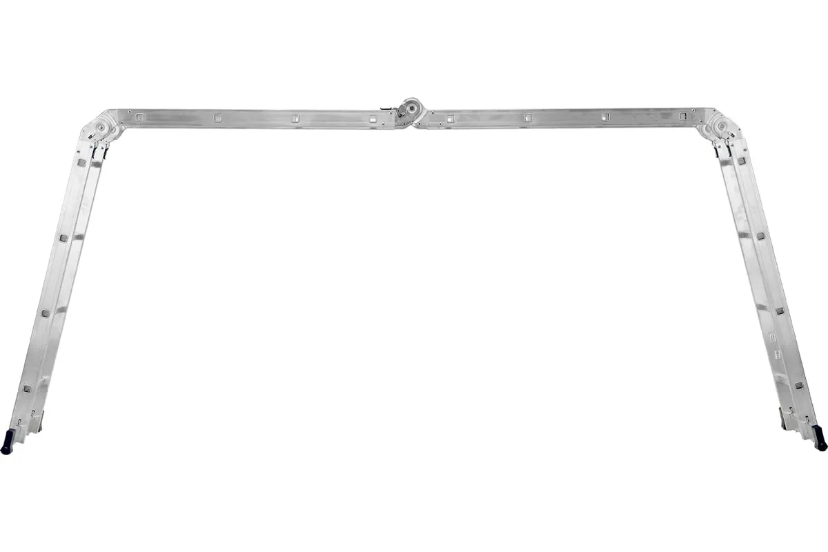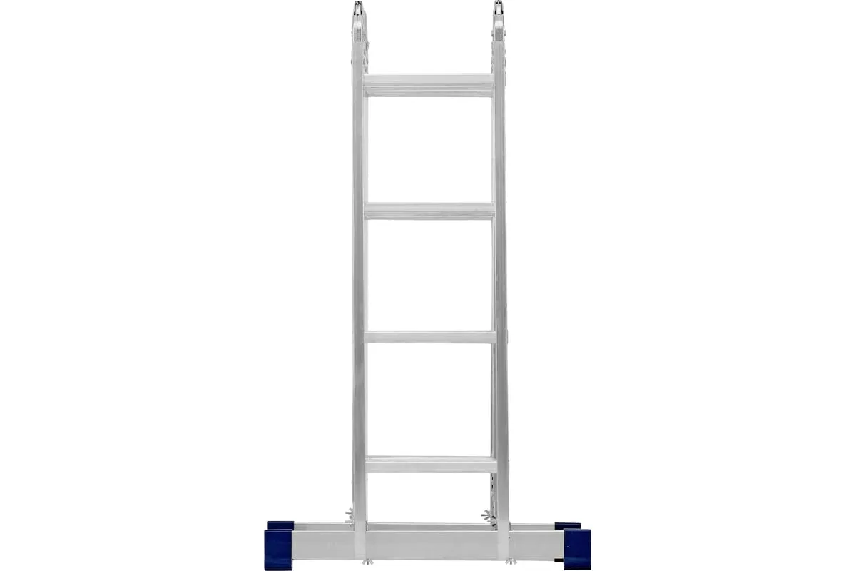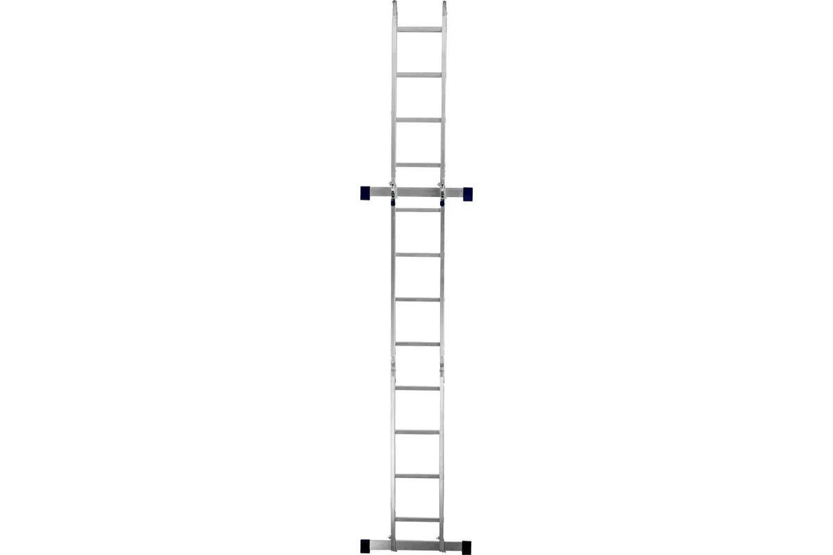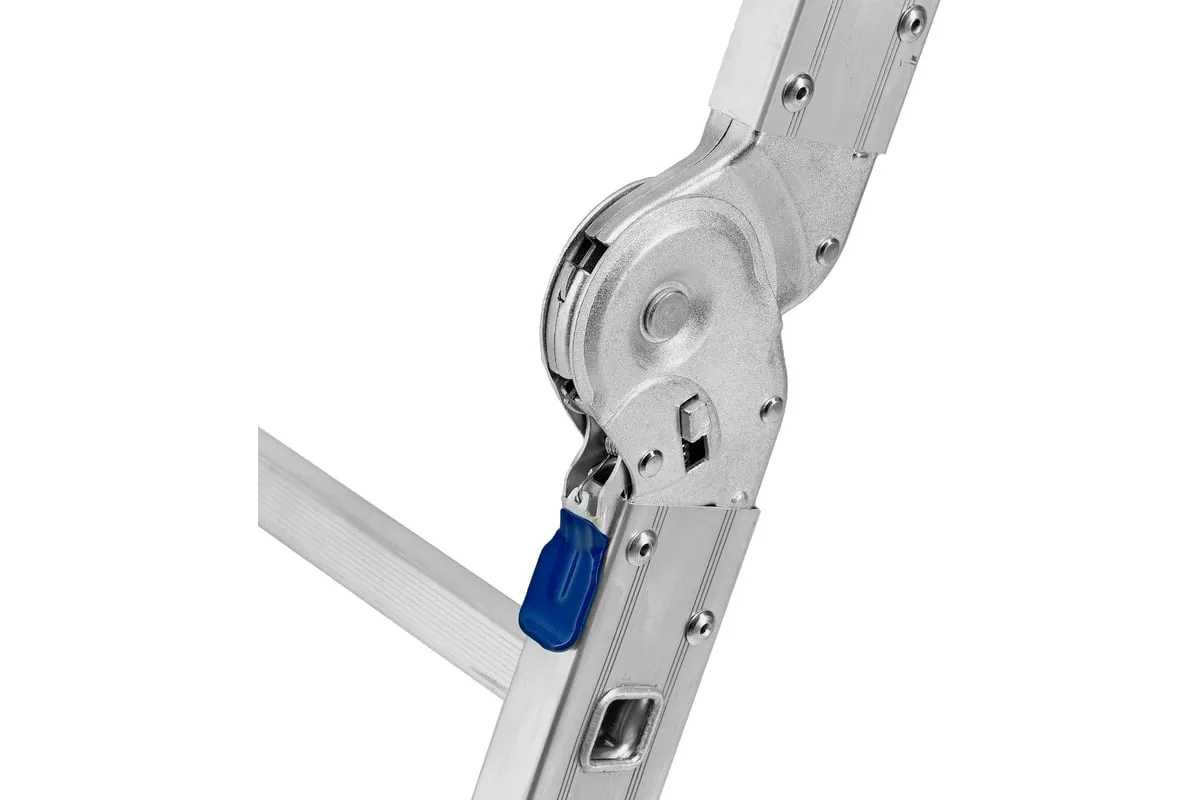 Шарнирная алюминиевая лестница СИБРТЕХ 4х4 97882 может трансформироваться в зависимости от выполняемых работ. Отличается надежной, устойчивой конструкцией, быстрой сменой положения за счет шарнирных механизмов. Защиту от скольжения на рабочих поверхностях обеспечивают заглушки и широкие траверсы.
