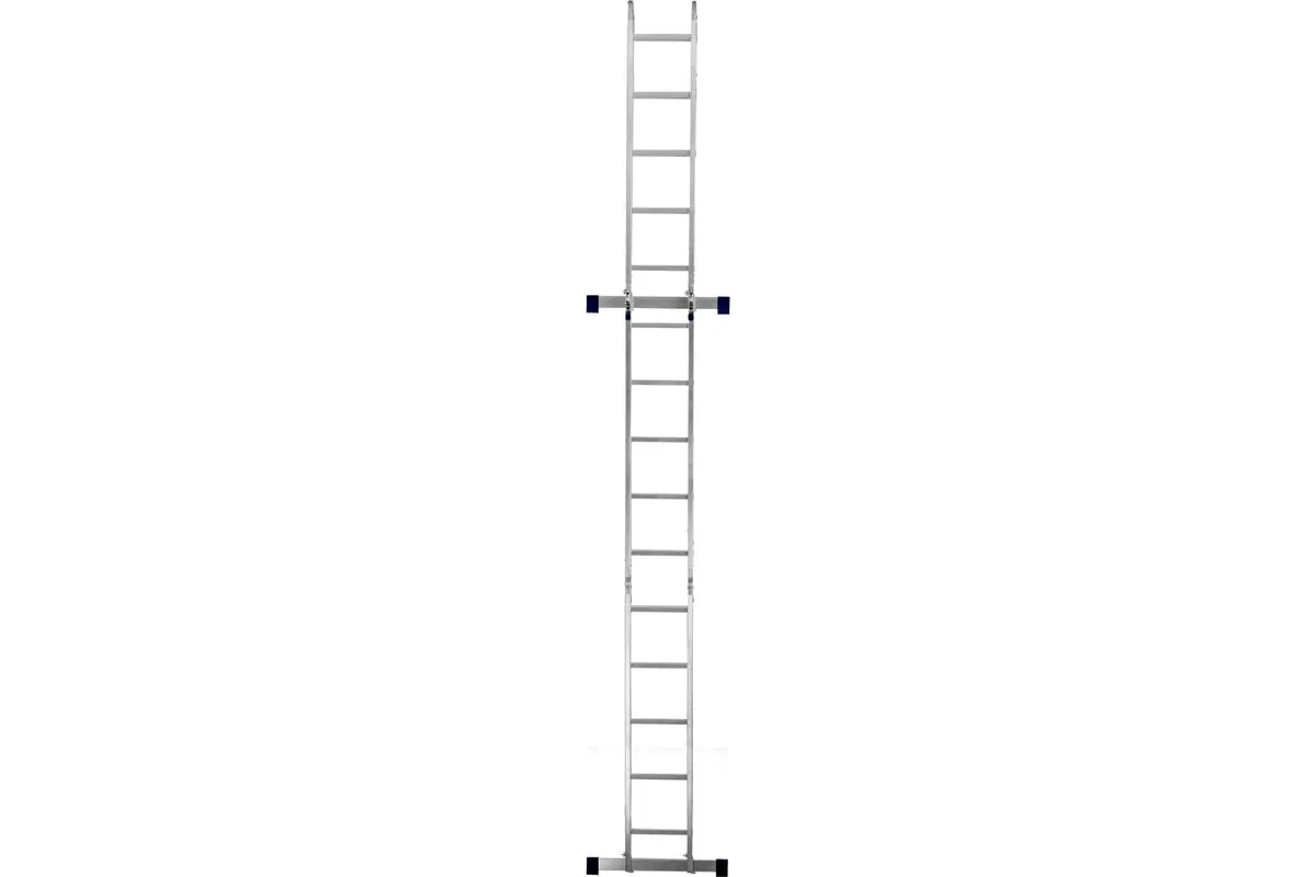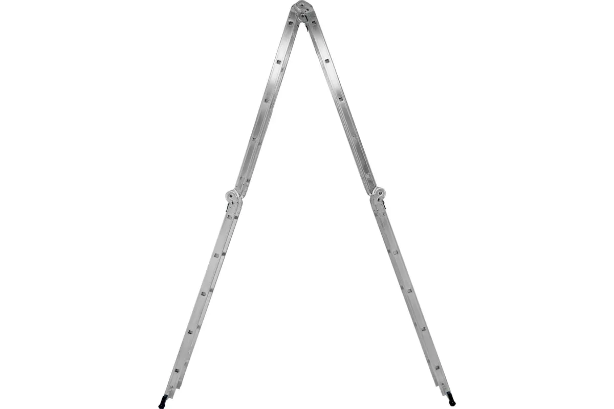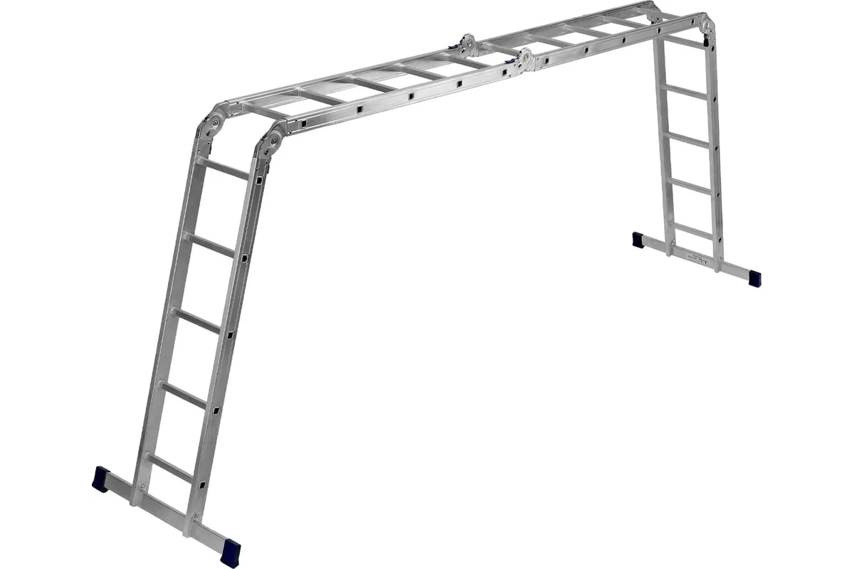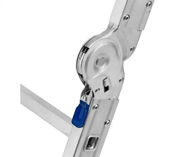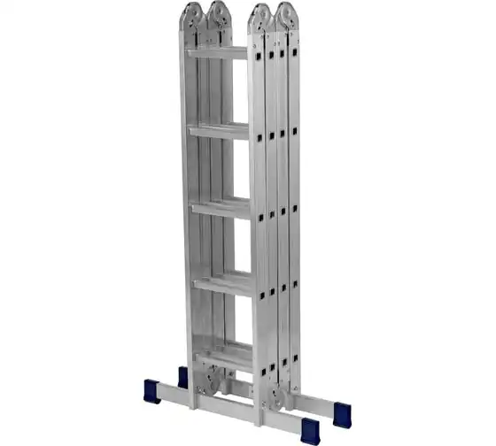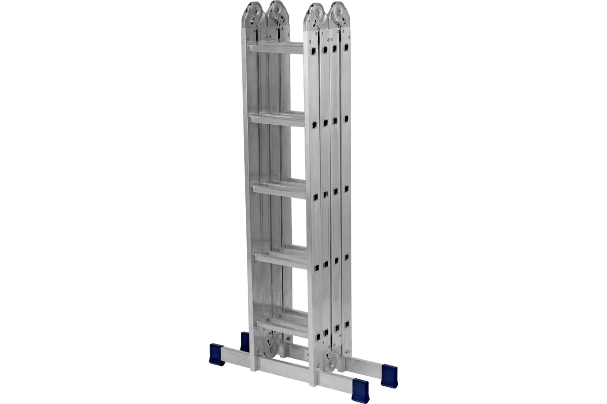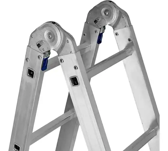 Шарнирная алюминиевая лестница СИБРТЕХ 4х5 97883 может трансформироваться в зависимости от выполняемых работ. Отличается надежной, устойчивой конструкцией, быстрой сменой положения за счет шарнирных механизмов. Защиту от скольжения на рабочих поверхностях обеспечивают заглушки и широкие траверсы.