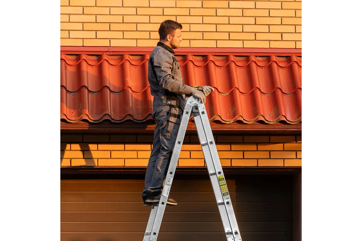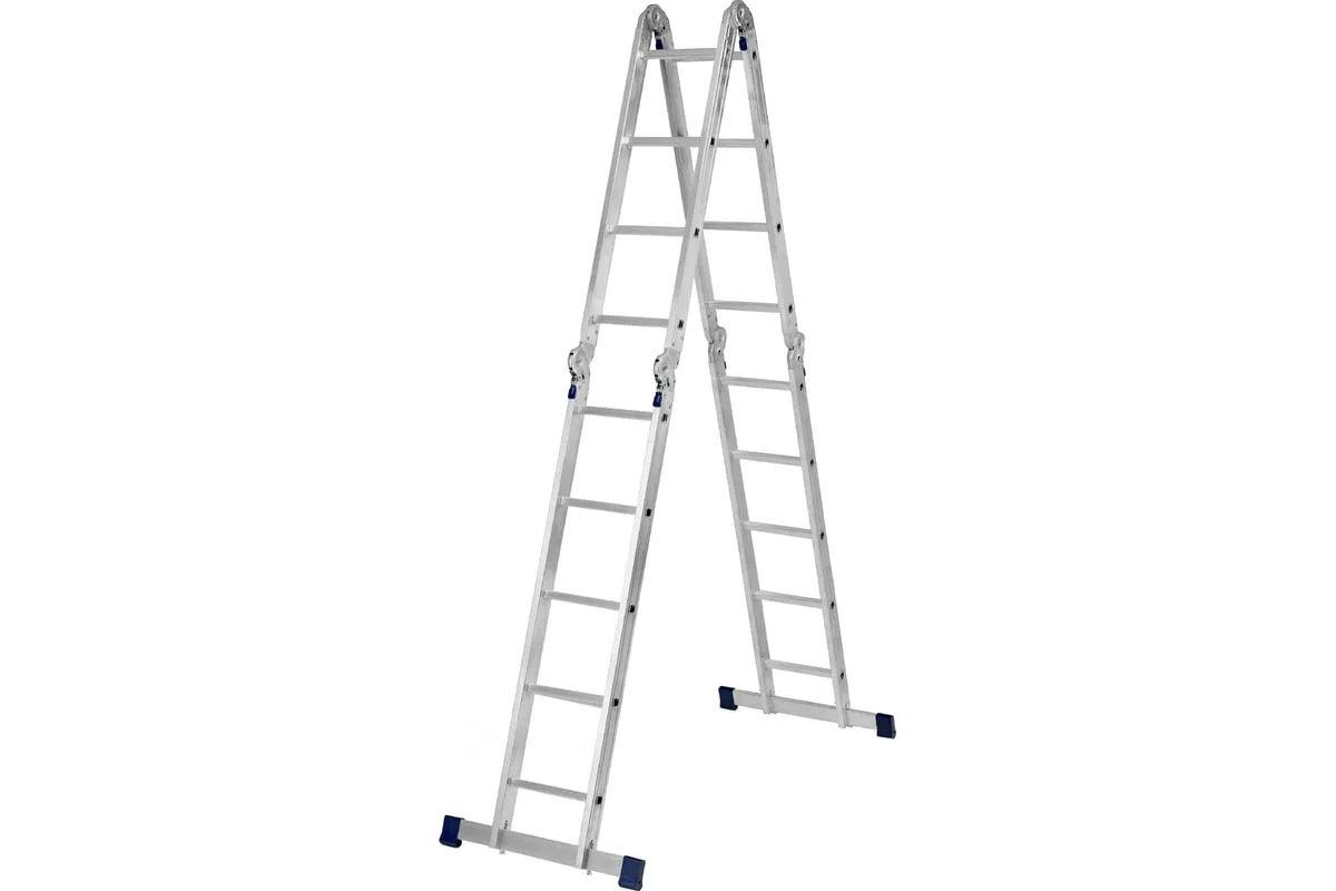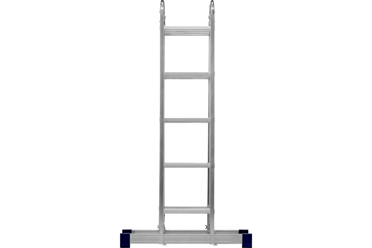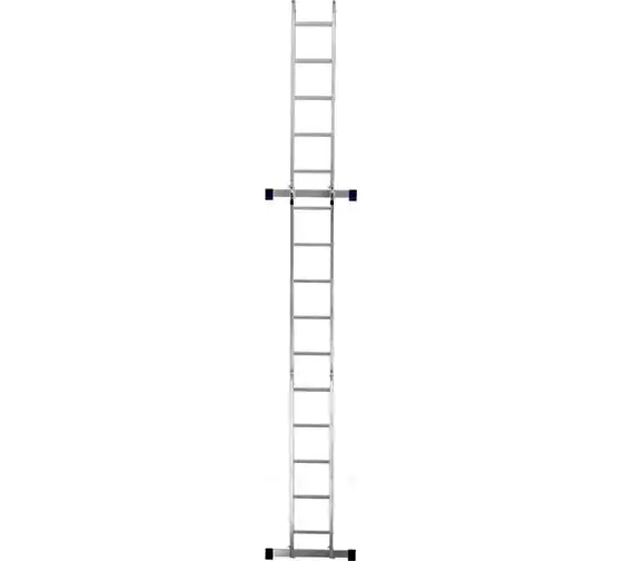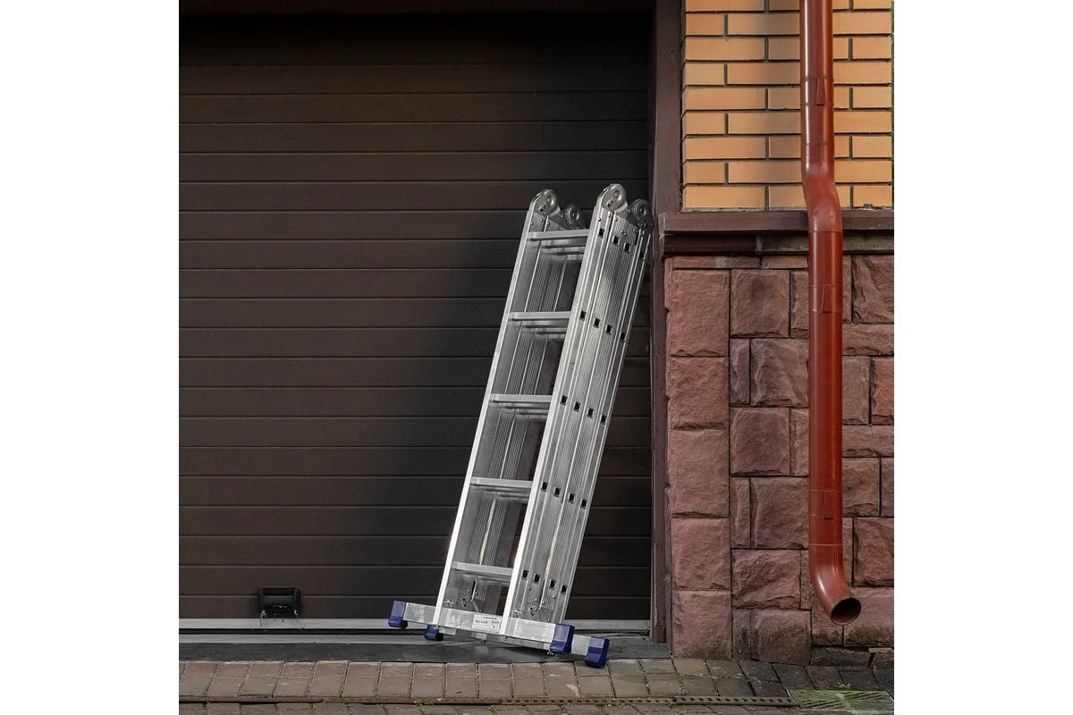 Шарнирная алюминиевая лестница СИБРТЕХ 4х5 97883 может трансформироваться в зависимости от выполняемых работ. Отличается надежной, устойчивой конструкцией, быстрой сменой положения за счет шарнирных механизмов. Защиту от скольжения на рабочих поверхностях обеспечивают заглушки и широкие траверсы.