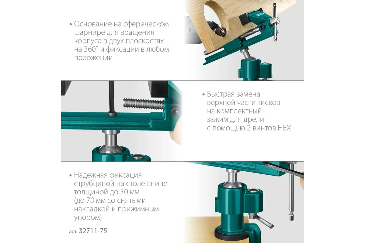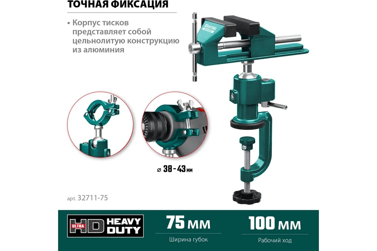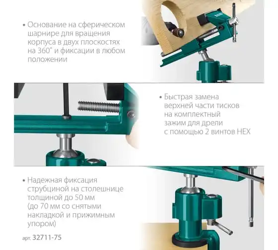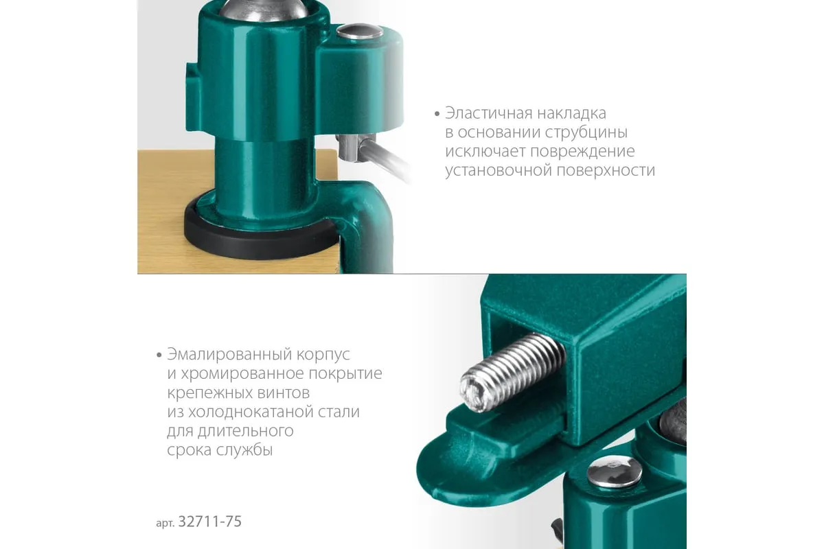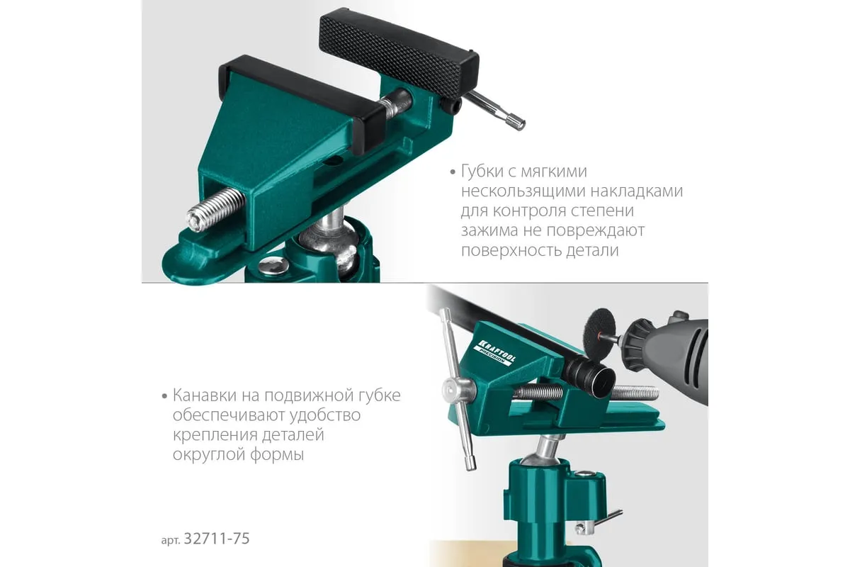 Шарнирно-поворотные тиски KRAFTOOL Precision 75 мм 32711-75 - профессиональный шарнирно-поворотный инструмент с ручным приводом для выполнения точных работ. Предназначены для зажима различных предметов или их отдельных составных элементов.