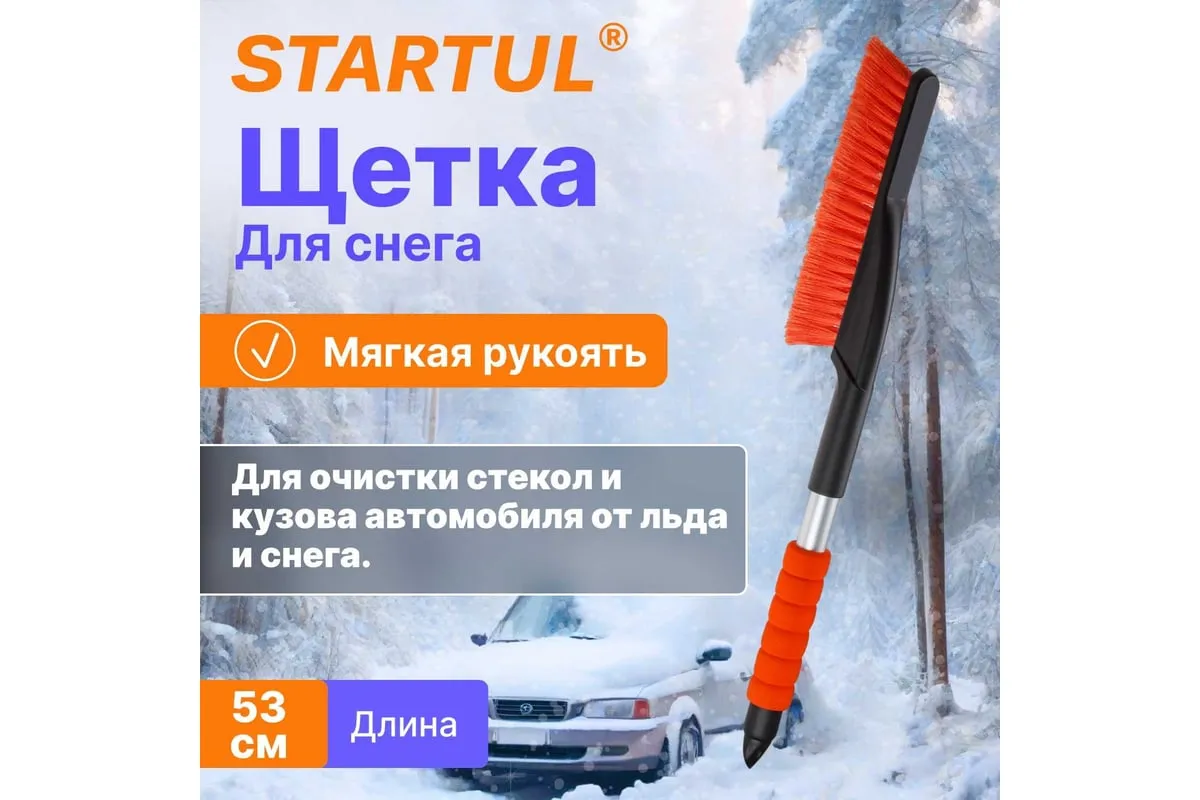 Щетка для снега STARTUL Master 53 см ST9080-08 используется для очистки стекол и кузова автомобиля от льда и снега. Упругая, распушенная щетина щетки имеет достаточную мягкость, чтобы не повреждать лакокрасочное покрытие автомобиля. Мягкая рукоять обеспечивает комфортную эксплуатацию. Щетка выполнена из жесткого морозостойкого полимера, что обеспечивает надежность и долговечность.