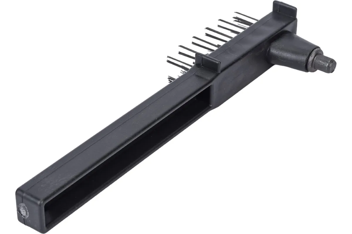 Щетка для удаления шлака SOLARIS B100 изготовлена из высококачественных материалов и предназначена для очистки сварных швов от образовавшегося в процессе сварки шлака. Цилиндрический выступ на тыльной стороне щетки предназначен для отстукивания шлака от обрабатываемой поверхности, а щетина начисто сметает остатки шлака.