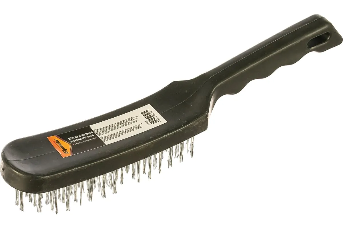 Металлическая 6-рядная щетка Sparta 748685 с пластмассовой ручкой используется для обработки металлических, деревянных и других поверхностей. Очищает их от загрязнений, ржавчины и старых лакокрасочных покрытий. Пучки проволоки расположены в 6 рядов, что обеспечивает высокую эффективность зачистки. Щетина надежно закреплена в основании и не выпадает во время работы. Щетка будет полезна во время строительных, ремонтных работ, а также пригодится дома или в гараже.