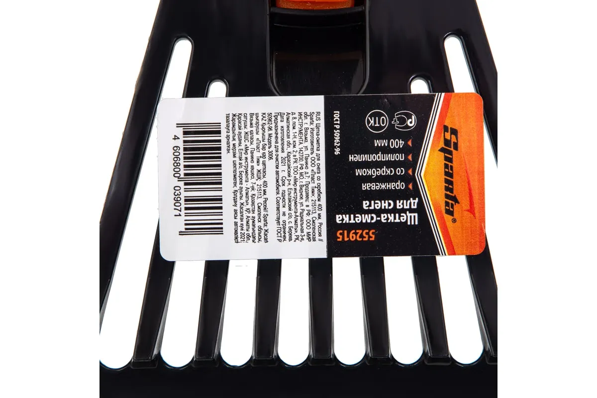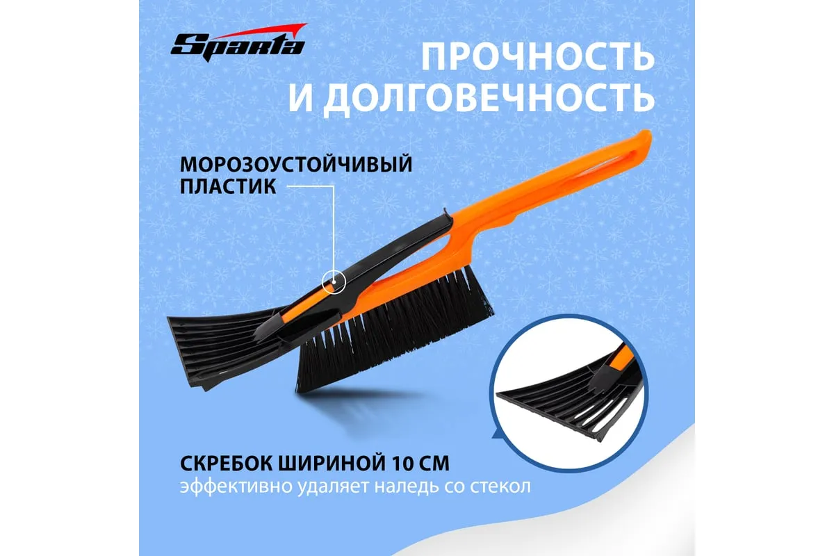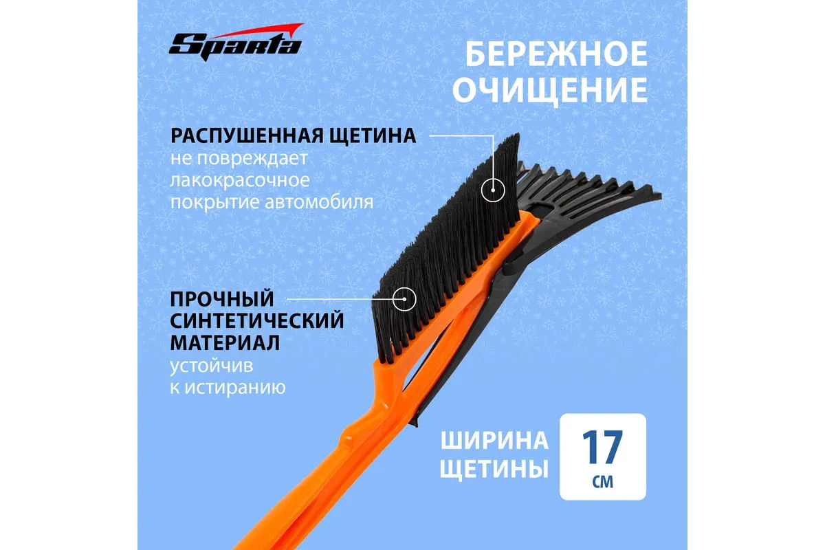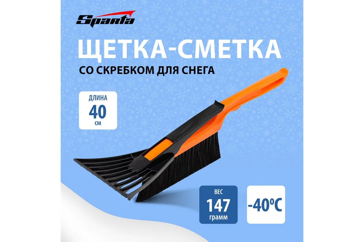 Щетка-сметка для снега со скребком Sparta 552915 длиной 400 мм применяется для чистки автомобиля после снегопада. Щетина средней жесткости не царапает лакокрасочное покрытие кузова, а скребок шириной 100 мм эффективно удаляет наледь со стекол. Щетка-сметка будет полезна автолюбителям.