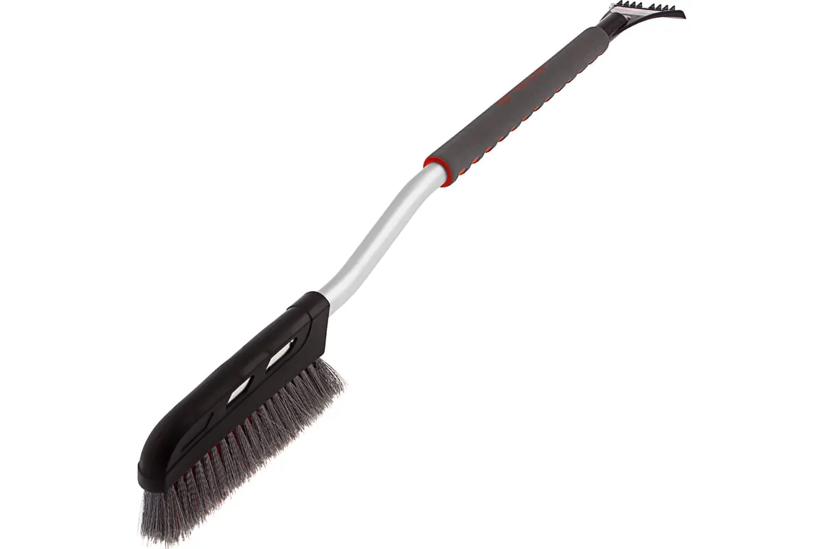 Щетка-сметка для снега со скребком используется для чистки автомобиля в зимний период. Она не царапает лакокрасочное покрытие, поскольку ее щетина имеет распушенные кончики. Благодаря удлиненной рукоятке удобно чистить капот и крышу автомобиля. Щетка со скребком пригодится автолюбителям.