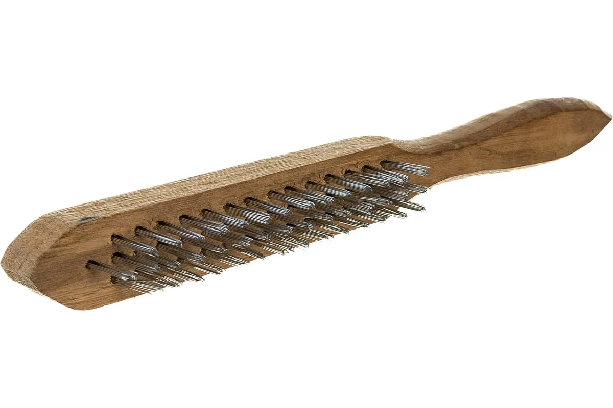 Металлическая 3-рядная щетка — инструмент для ручного удаления ржавчины, грязи, остатков краски с металлических, деревянных и других поверхностей. 3-рядная щетина обеспечивает качественную обработку. Щеткой пользуются строители, ремонтники, специалисты по кузовному ремонту, пригодится она и в быту.