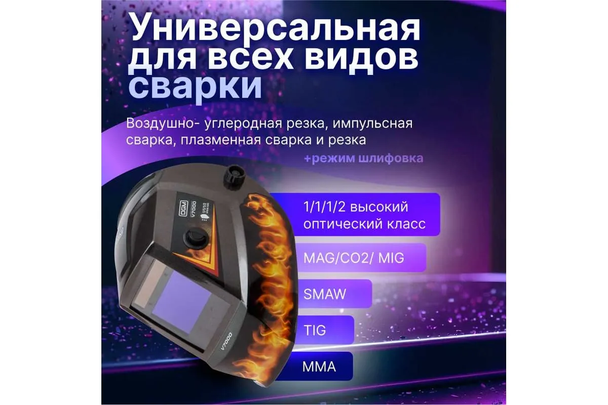 Данная модель профессиональной серии оснащена качественным светофильтром с 4 фотосенсорами, что позволяет проводить сварочные работы даже на небольших токах в режиме TIG. Высокий оптический класс 1/1/1/2. 4 фоточувствительных сенсора. Большая зона обзора 104х63 мм. Плавная регулировка чувствительности. Плавная регулировка времени задержки высветления после сварки. Для всех типов сварки. Оптимальный выбор для сварки TIG даже на малых токах. Режим "Шлифовка". Эластичный ударопрочный пластик. Увеличенная площадь защиты области шеи, ушей, головы. Оголовье с большим количеством настроек позволяет настроить щиток под любого оператора. Сменная батарея CR2450.
