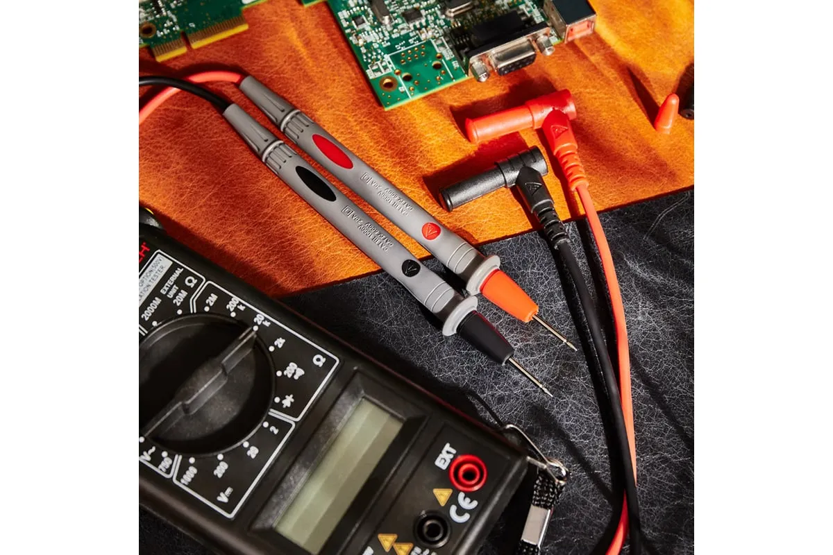 Щупы обеспечены надежной изоляцией, для защиты от электрического тока. В комплекте имеются дополнительные изолирующие колпачки для жал.