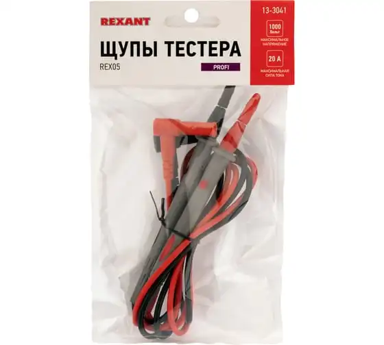 Щупы тестера REX05 подключаются к тестерам и токовым клещам с длинным посадочным гнездом, таких какM890, M266, MS200, MY6, MS826, UT5,UT6, UT7 для определения напряжения. Важно правильно подсоединить провода -черный щуп подключается в общее гнездо, красный в гнездо "+".