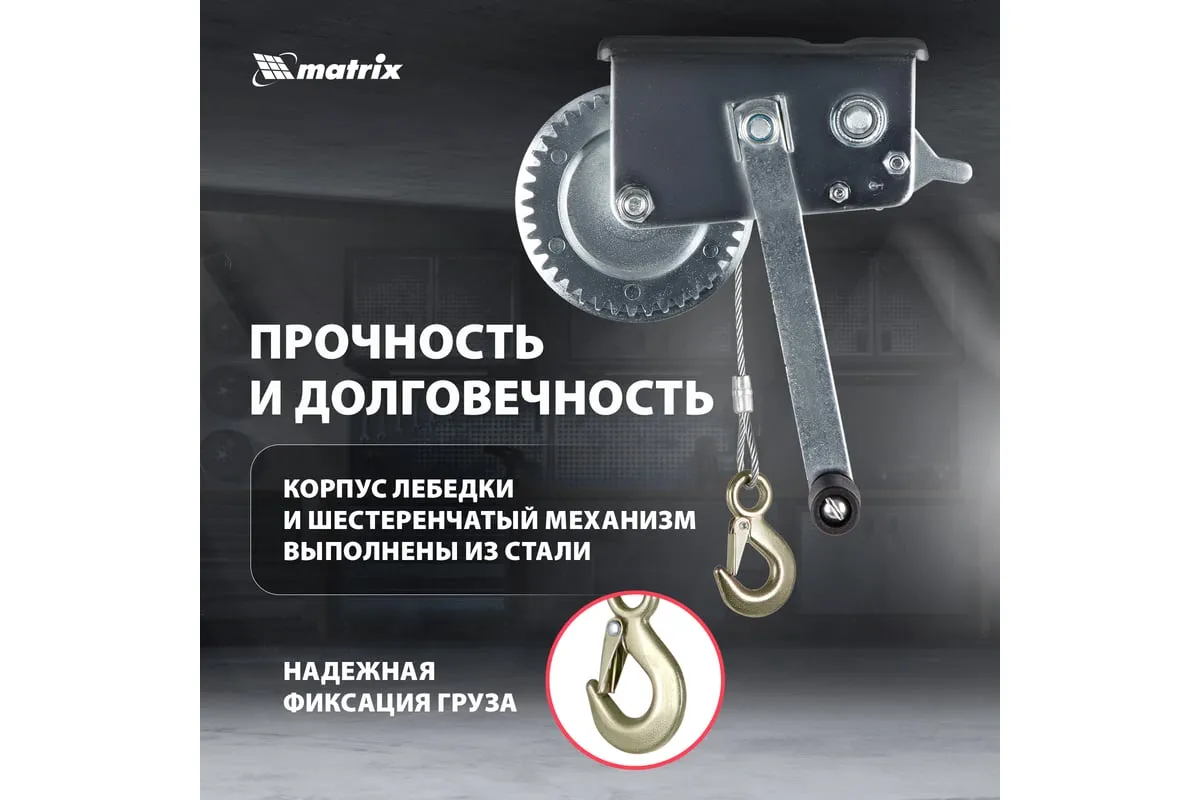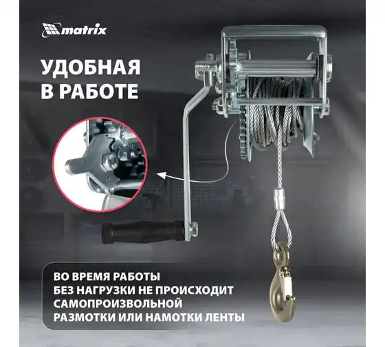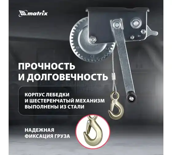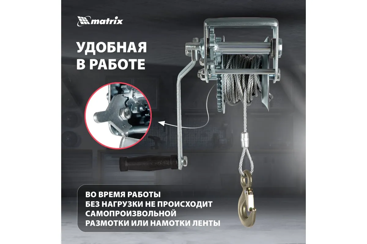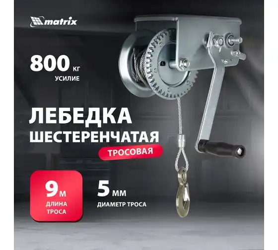 Шестеренчатая тросовая лебедка Matrix 522735 рассчитана на усилие тяги 0,8 т и предназначена для перемещения грузов в горизонтальной плоскости. Пригодится для проведения строительных, такелажных, погрузочно-разгрузочных работ. Лебедка с ручным рычажным механизмом не требует подключения к сети, что особенно актуально для работы вне помещения.