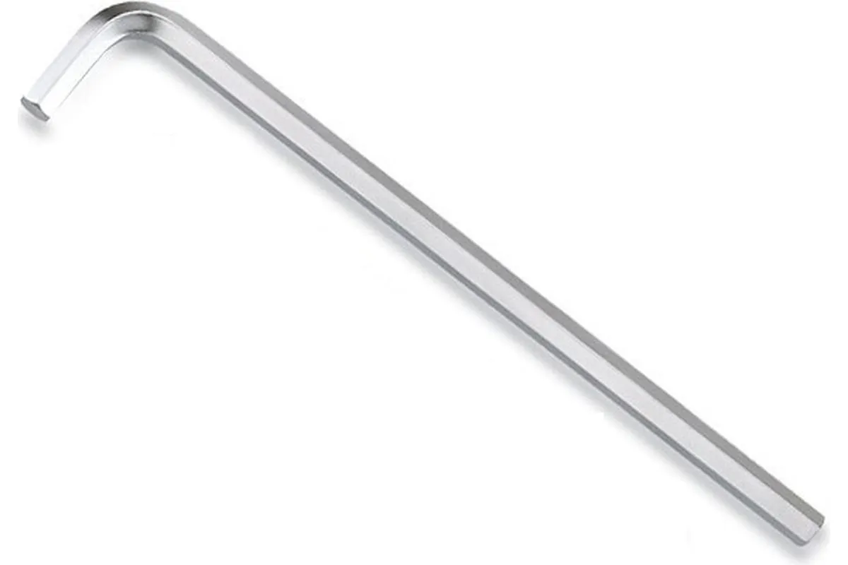 Шестигранный ключ имеет Г-образную форму с разнодлинными сторонами и предназначен для откручивания и закручивания болтов с внутренним шестигранником.