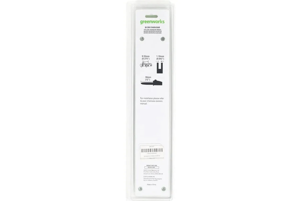 Шина 30 см GreenWorks 2947007 совместима с моделями GD24CS30 24V 2007007 и G40CS30II 40V 2007807. Также совместима с цепью 2947107.