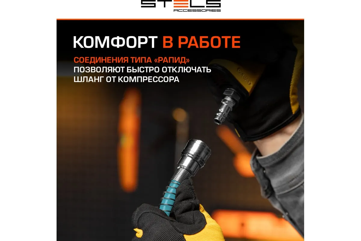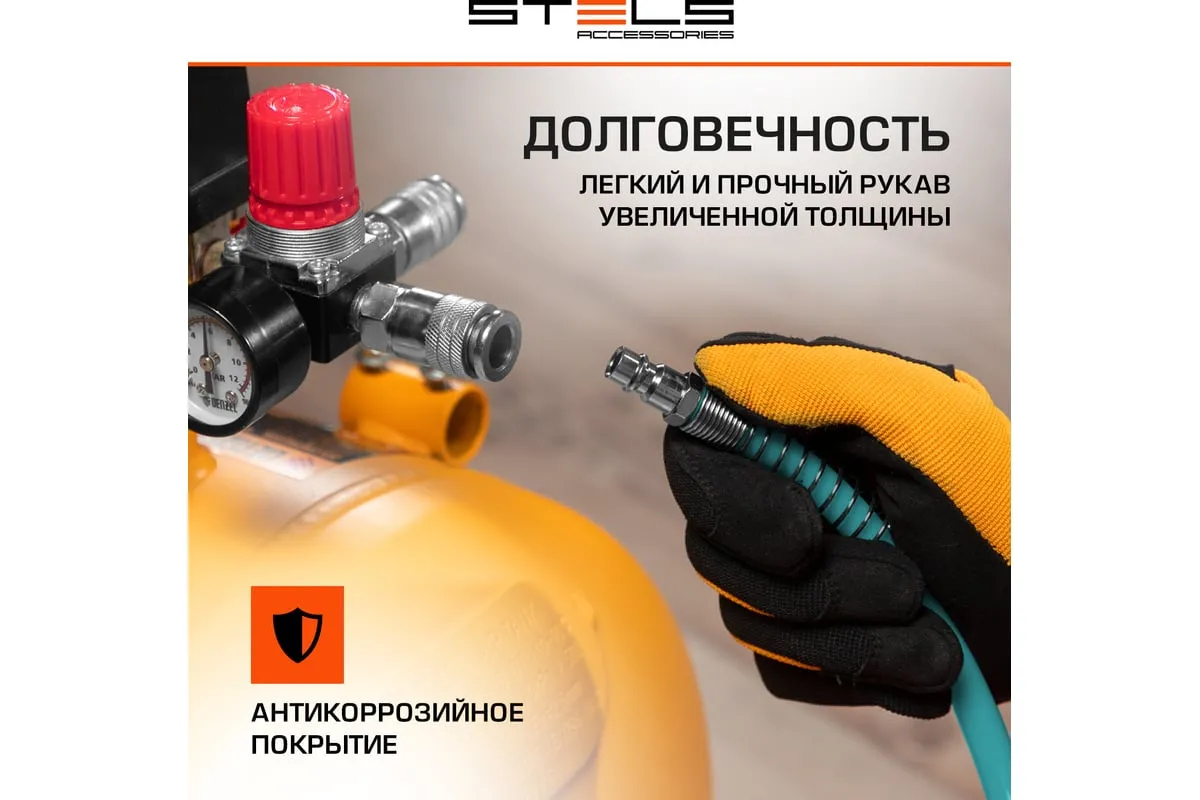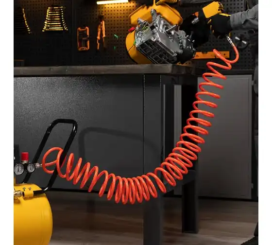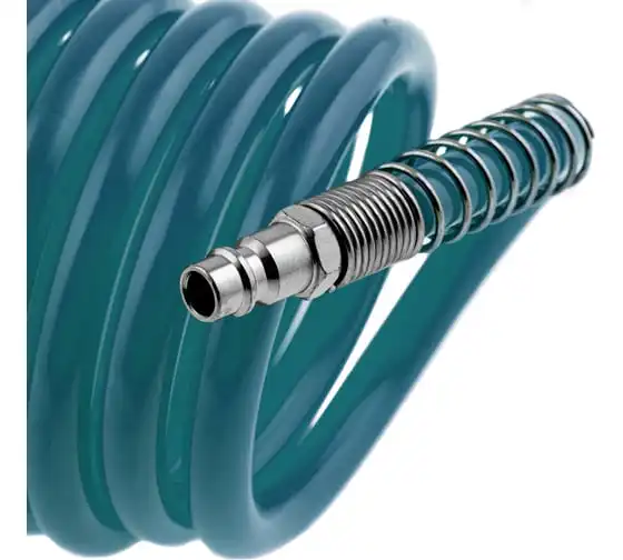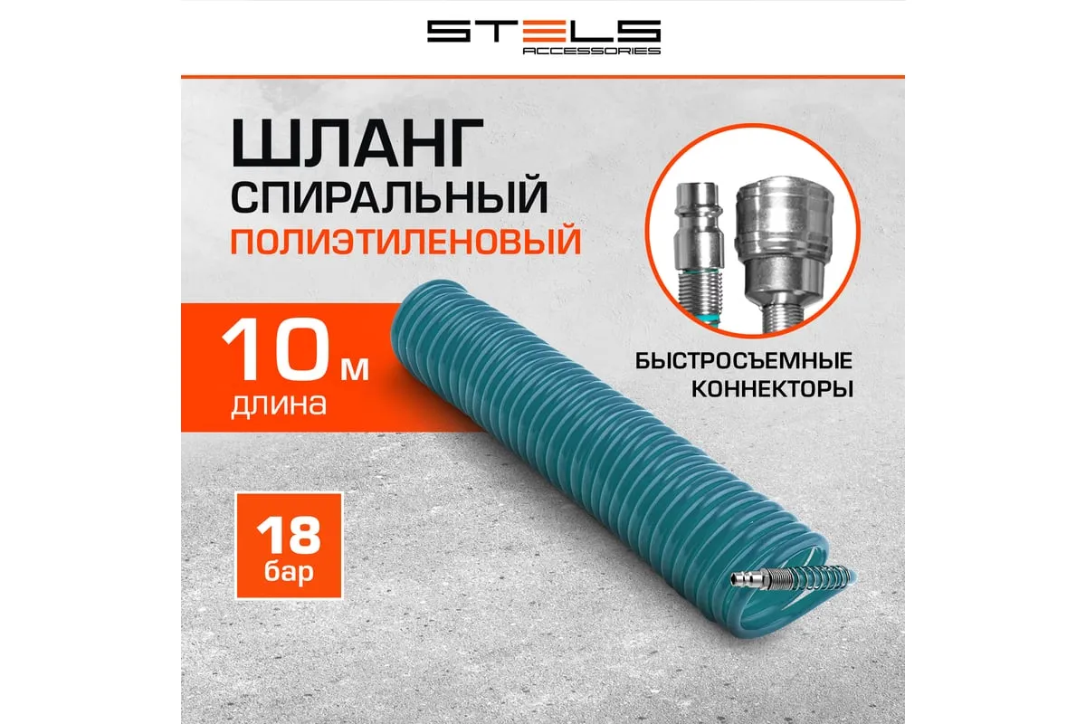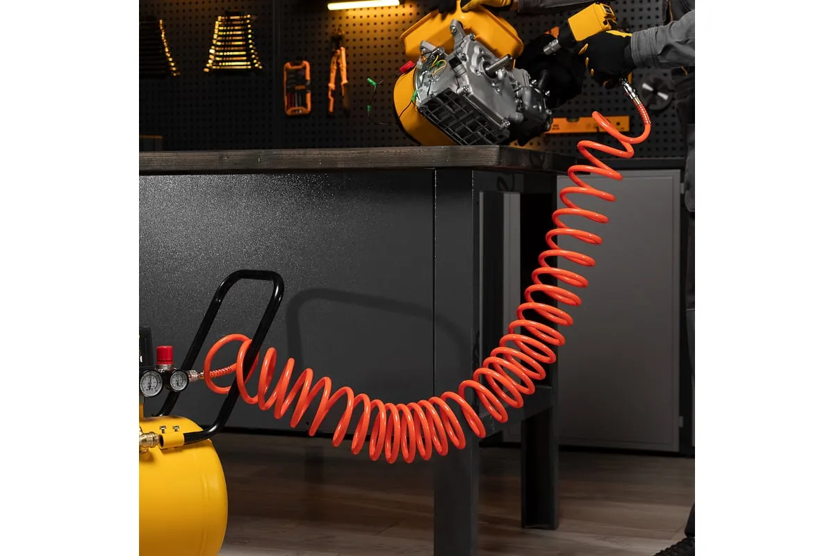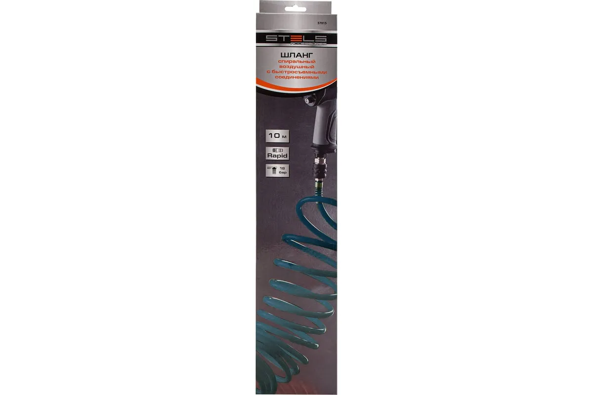 Спиральный воздушный шланг Stels 57015, 8 х 12 мм, длиной 10 м, с быстросъемными соединениями, выдерживает давление до 18 бар и предназначен для подключения пневматических инструментов к источнику сжатого воздуха. Полиэтилен, из которого изготовлен рукав, характеризуется легкостью и устойчивостью к воздействию агрессивных сред, поэтому шланг не боится контактов со строительными смесями, маслом, бензином, а работа с ним не вызывает усталости. Пригодится во время строительства, ремонтно-отделочных работ, а также будет полезен в мастерской или гараже.
