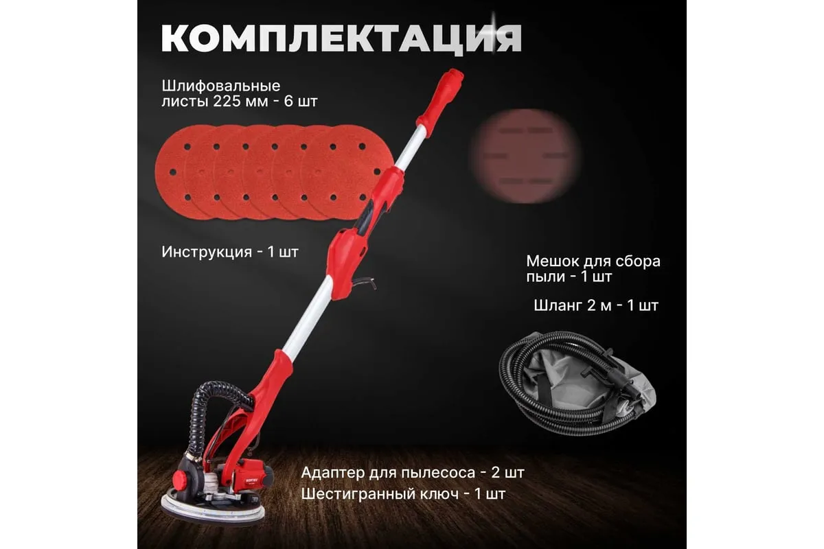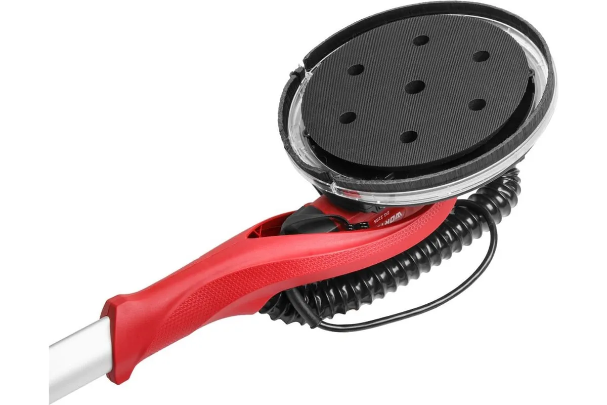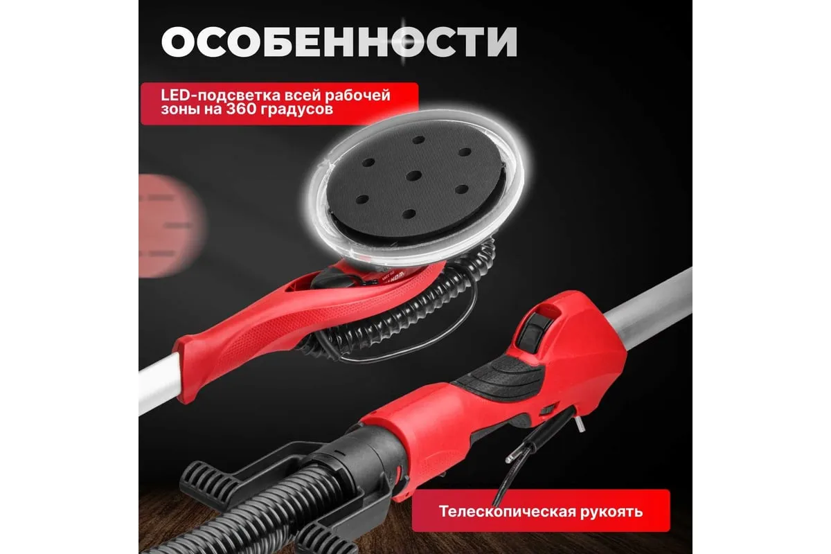 Шлифмашина для стен обеспечит качественную и быструю обработку поверхности. Облегченная телескопическая (складная) конструкция и маленькие габариты сделают работу комфортной для каждого. Кроме того, инструмент удобно хранить, так как он не занимает много места. LED-подсветка всей рабочей зоны на 360 градусов поможет избежать появления неровностей при шлифовке. Не требуется подключение к пылесосу: в комплекте шланг 2 м и пылесборный мешок. Шланг надежно фиксируется с помощью усовершенствованного типа коннектора, что обеспечит комфортную работу без выделения пыли.