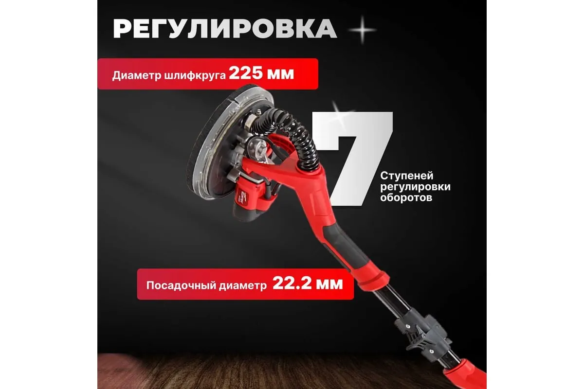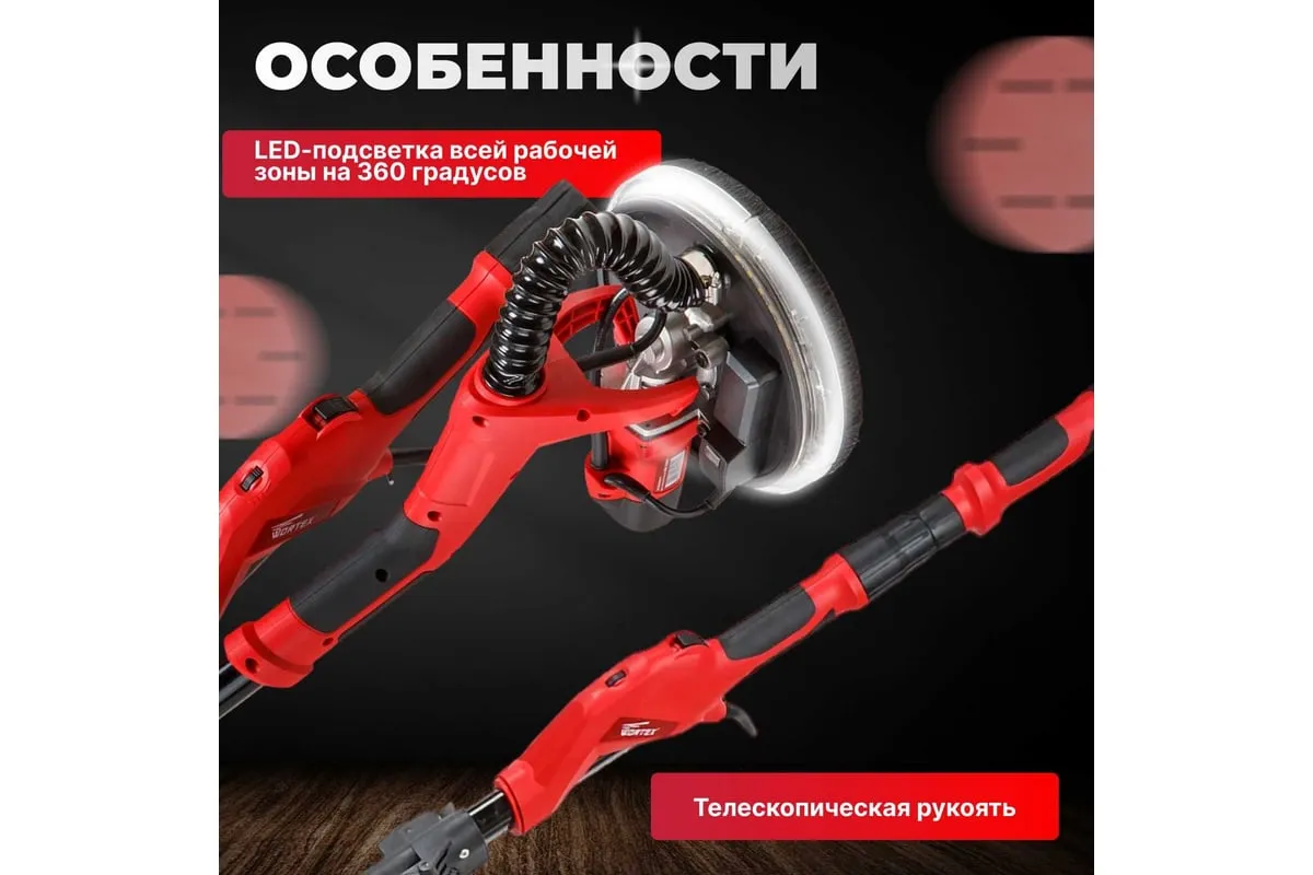 Шлифователь для стен предназначен для сухого шлифования зашпаклеванных поверхностей стен и потолков, финишной обработки поверхностей под покраску. Он обеспечивает более быструю и качественную обработку поверхности, чем ручной метод. Система крепления шлифовальной бумаги с помощью липучки - для ее быстрой замены шлифкруга. Благодаря удлинителю вала, входящему в комплект шлифмашины, пользователю не надо тянуться, чтобы отшлифовать потолок или верхнюю часть стены. Наличие LED-подсветки обеспечивает эффективную работу на темном участке. Время очистки сводится к минимуму за счет использования пылесоса, соединенного со шлифмашиной.