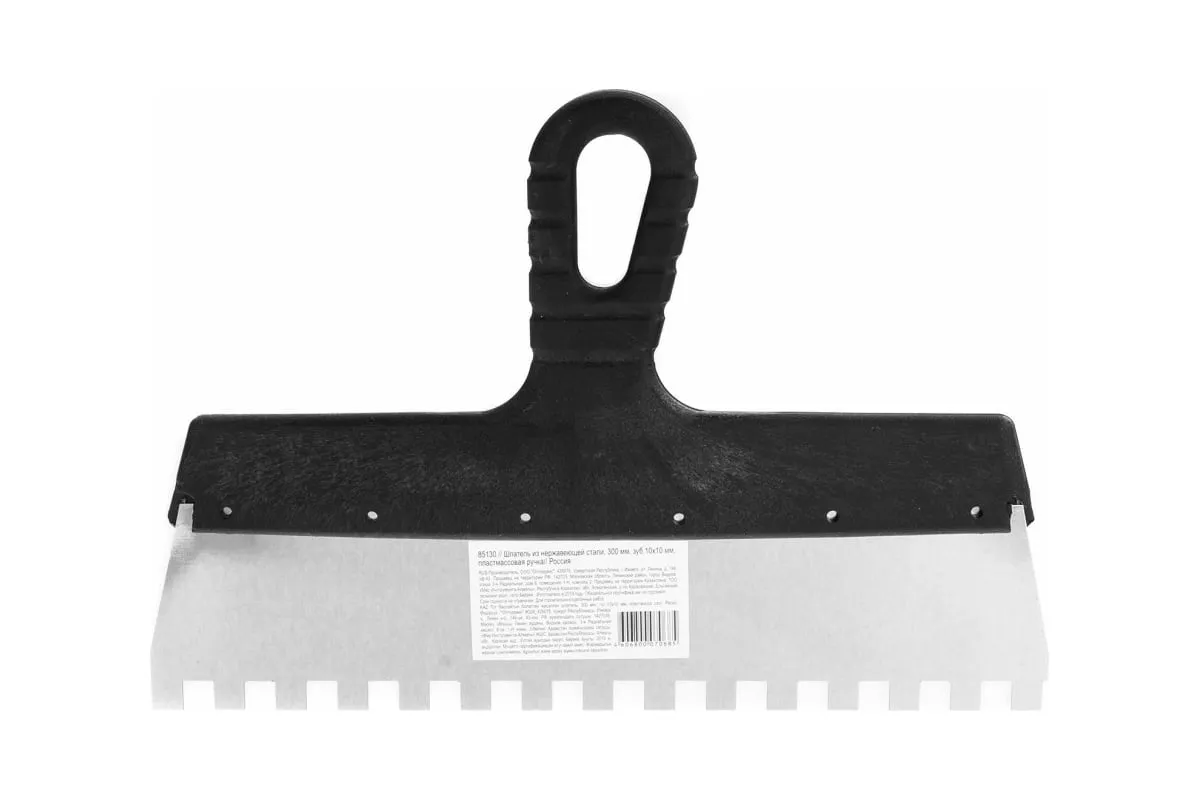 Шпатель Sparta 85130 шириной 300 мм, из нержавеющей стали, с пластмассовой ручкой и зубьями 10 х 10 мм, применяется для равномерного нанесения клея при укладке мелкоформатной плитки, мозаики и т.д. Квадратные зубья облегчают нанесение клеевого состава, позволяя ровно и экономно распределять его по поверхности. Зубья размером 10 х 10 мм рассчитаны на плитку площадью 900-2500 см2.