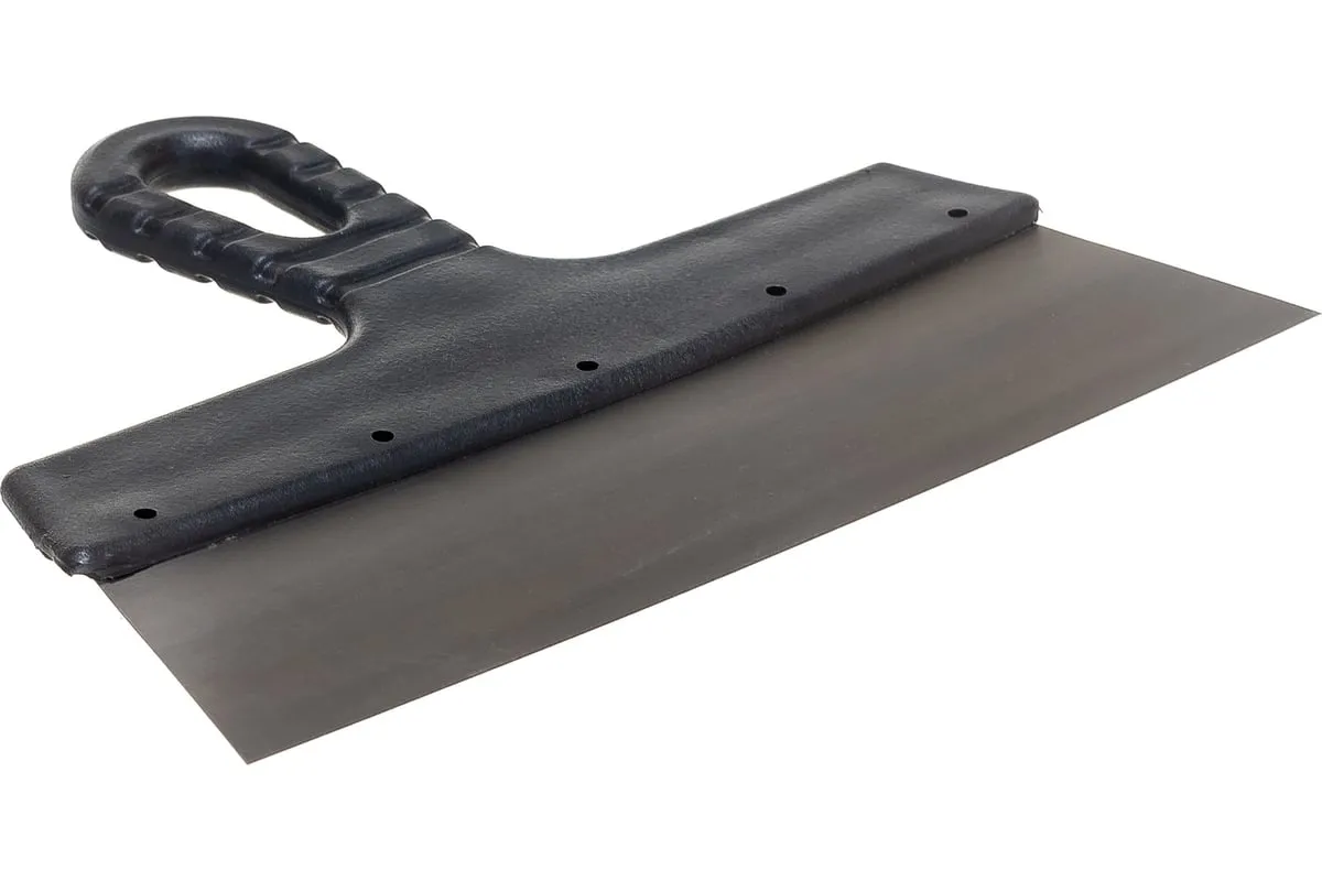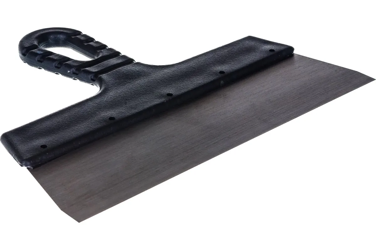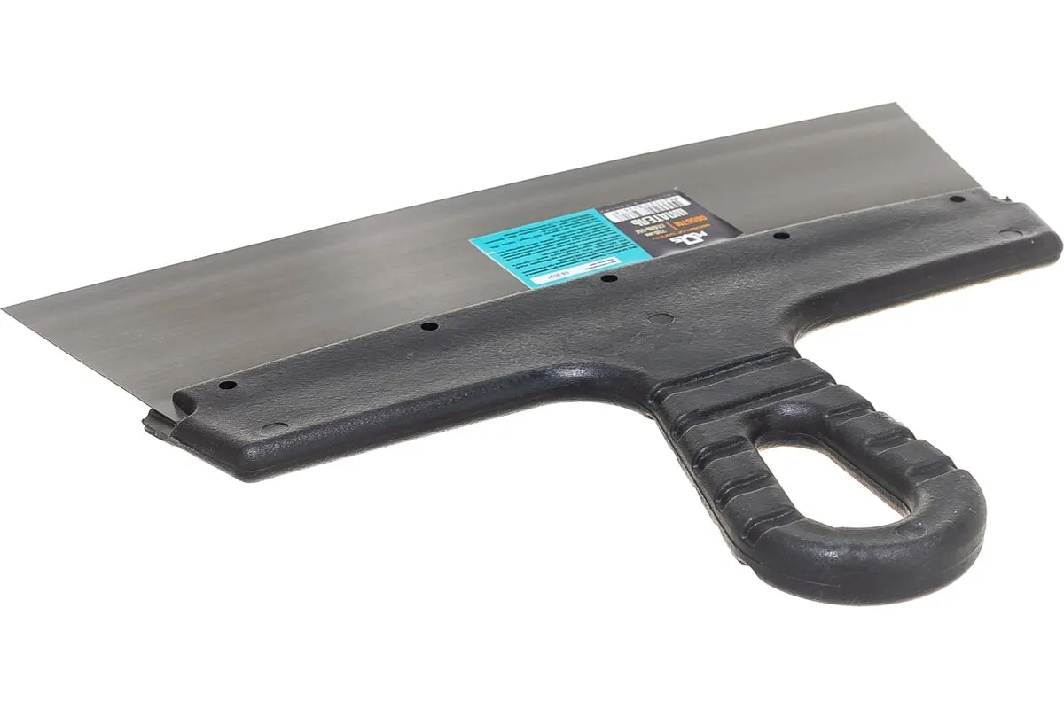 Шпатель (стальное лезвие, пластиковая ручка) 250 мм MOS 06567М применяется для нанесения штукатурки на стены. Удобная пластиковая рукоятка с рифлением не скользит в руках. Благодаря отверстию в рукоятке инструмент можно подвесить. Рукоять наклонена по отношению к лезвию, что делает нагрузку на руки меньше.