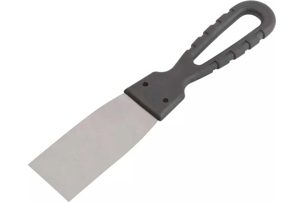 Шпатель (стальное лезвие, пластиковая ручка) 40 мм MOS 06561М имеет небольшие размеры и подходит для отделки небольших участков стены. Заполнение выбоин, трещин, глубокин неровностей шпатлевкой и иными смесями удобно выполнять шпателем небольшой ширины.