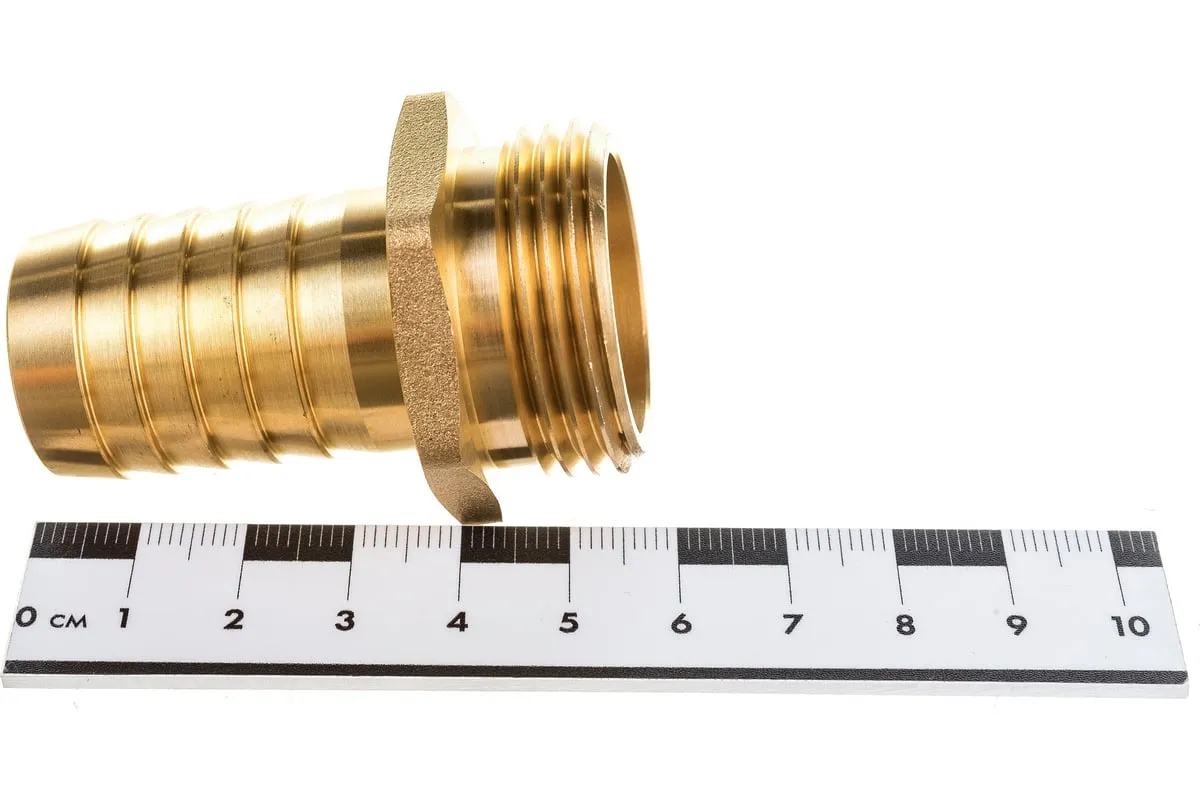Латунный штуцер с наружной резьбой Беламос ST1-1 1"НРх25 мм - важный элемент трубопровода или его соединительного узла. Втулка используется для соединения трубопровода с гибким шлангом для осуществления полива, водоснабжения или подачи воды для других нужд. Для надежного крепления шланга на штуцере рекомендуется использовать хомут.