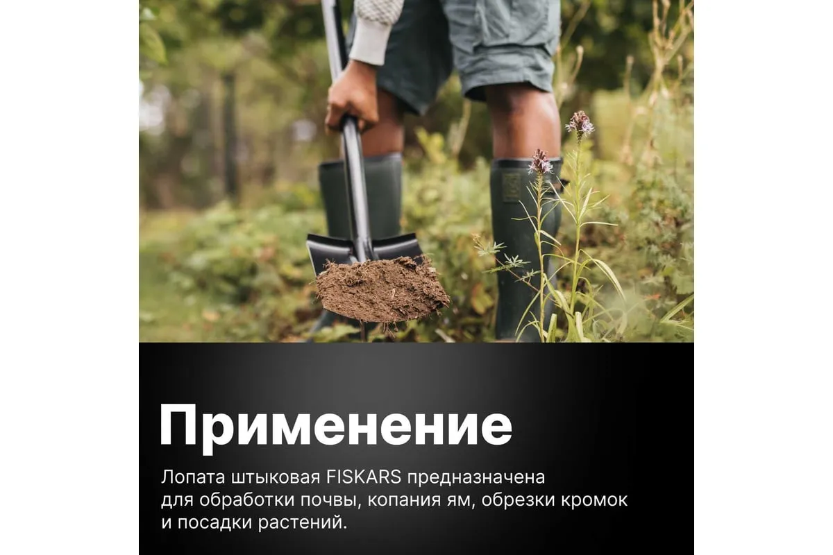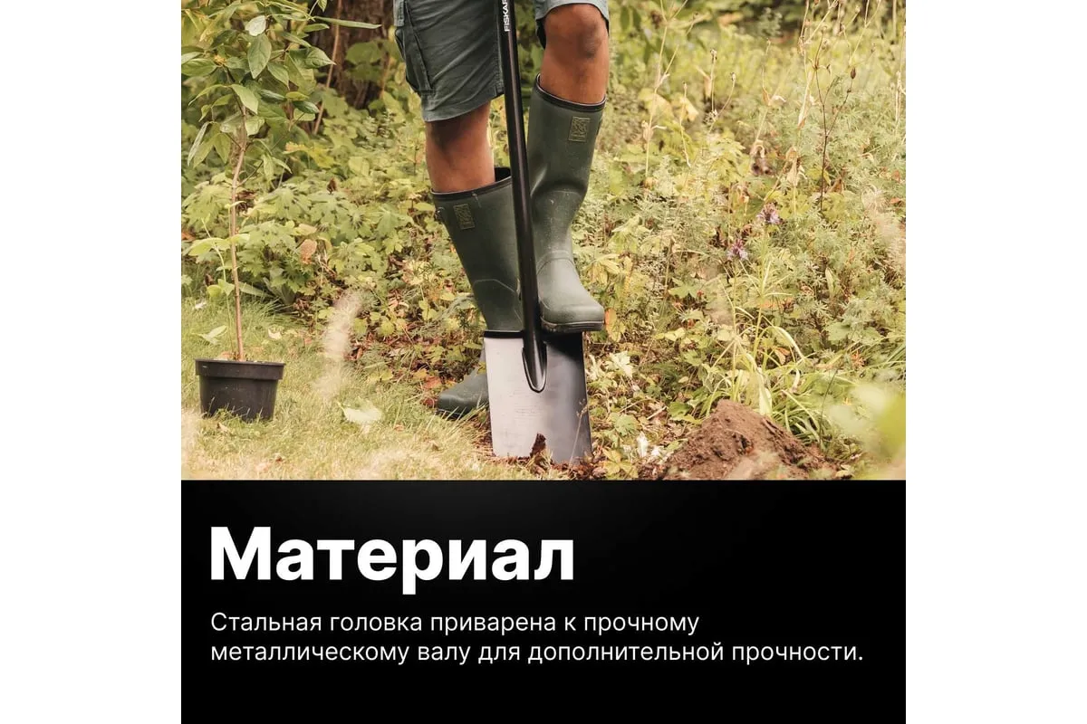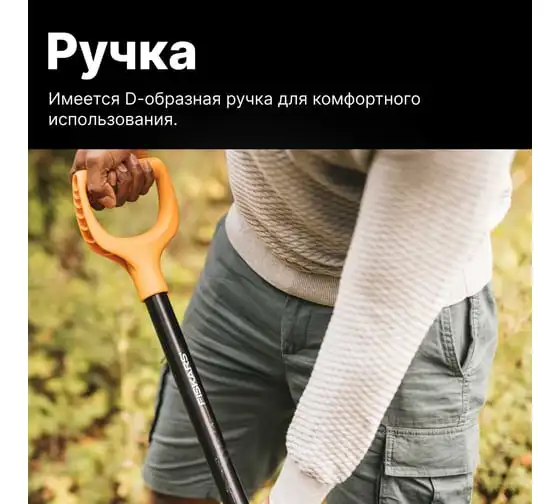 Использование борсодержащей стали придаёт лопате дополнительную жесткость и обеспечивает лёгкое проникновение в почву. Имеется D-образная ручка для комфортного использования.