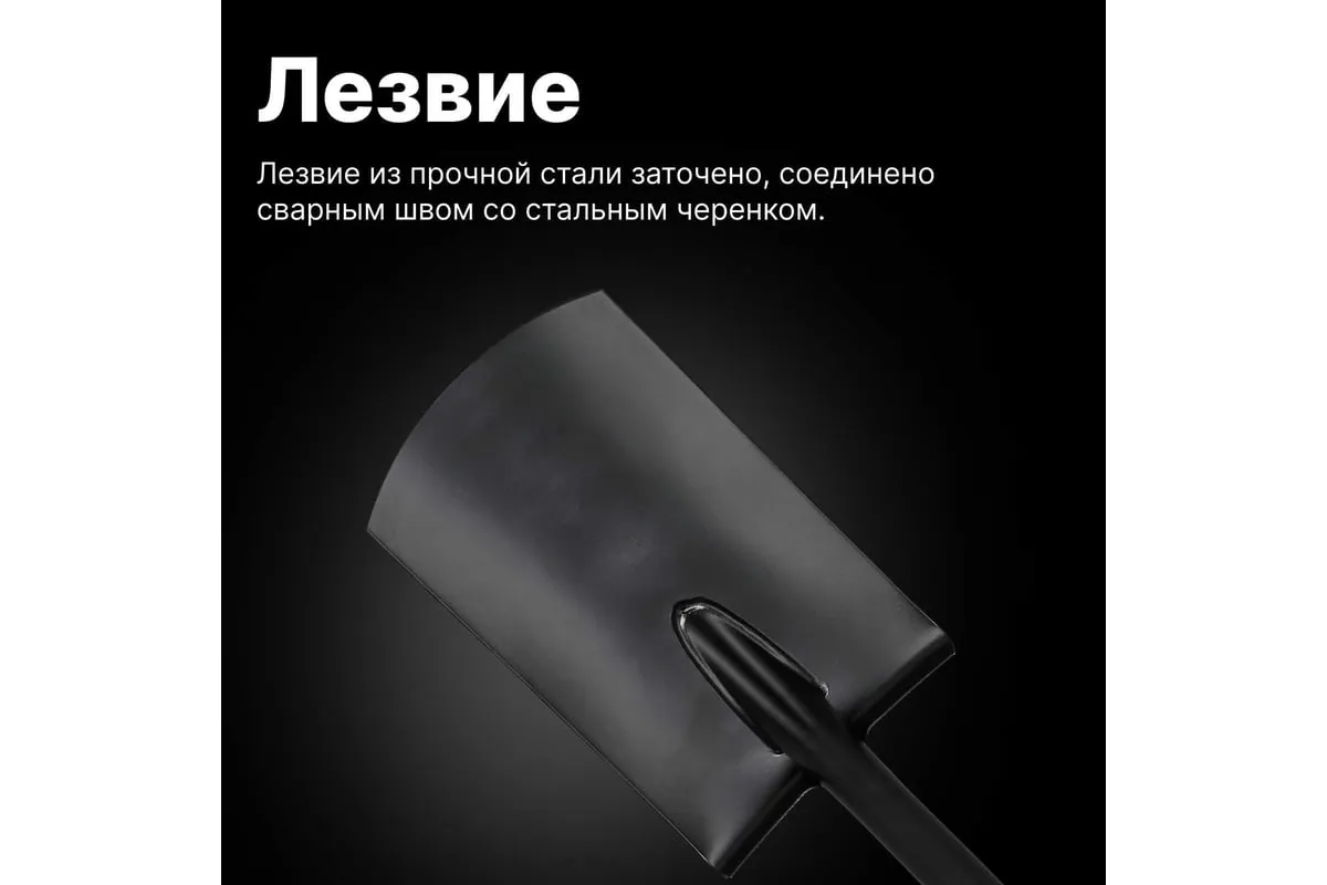 Эргономичный стальной черенок круглого сечения. Сварное соединение между лезвием и черенком - обеспечивает надёжность и долговечность.