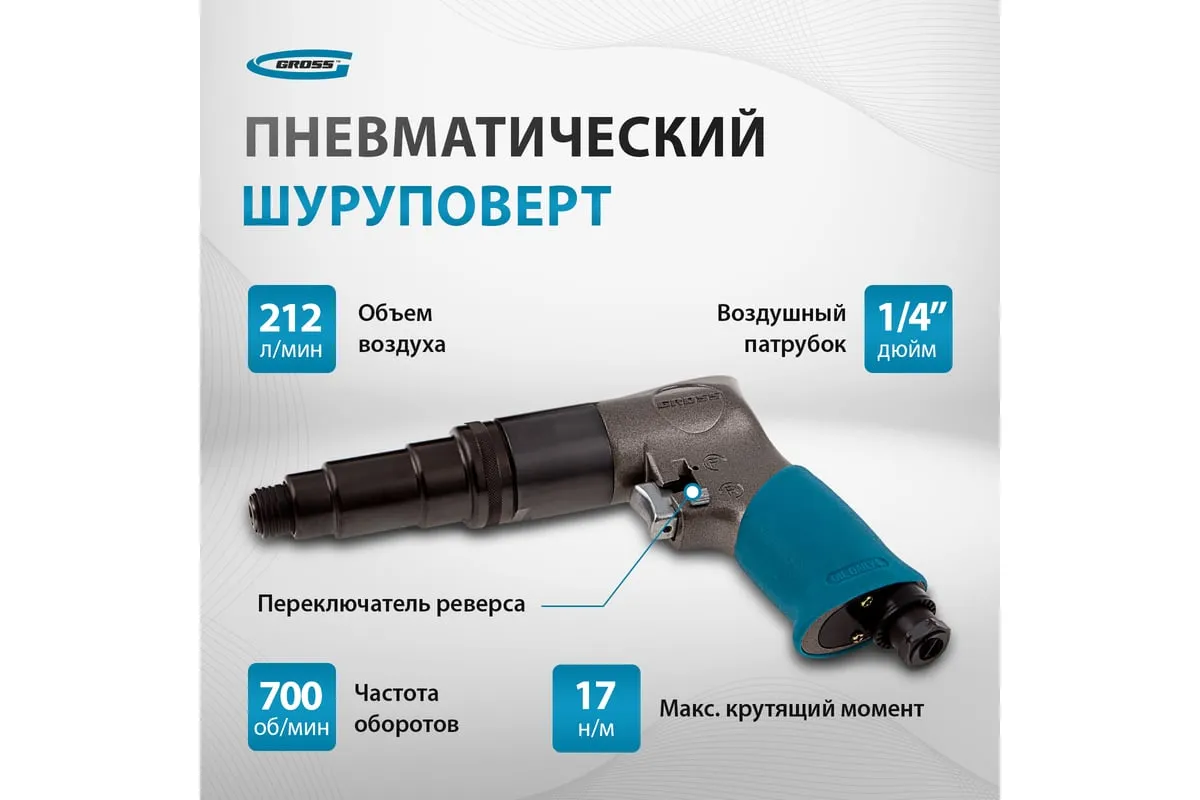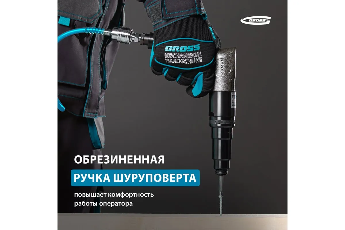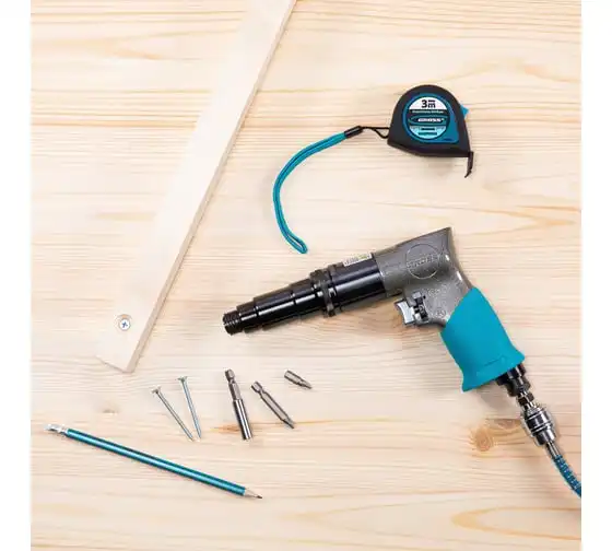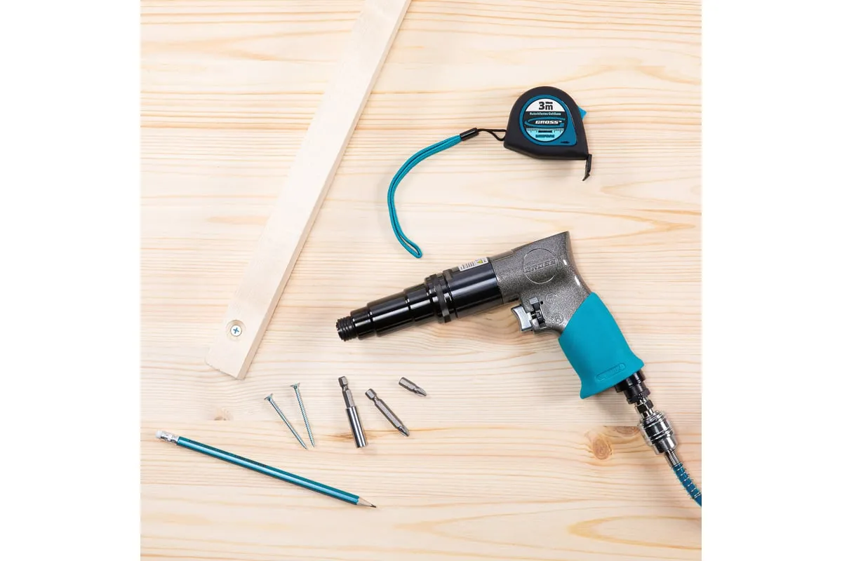 Пневматический шуруповерт используется для закручивания/откручивания различных крепежных изделий и сверления отверстий. Рукоятка с резиновым покрытием способствует комфортной работе. Модель отличается внушительным рабочим ресурсом, и способна длительное время работать без остановки.