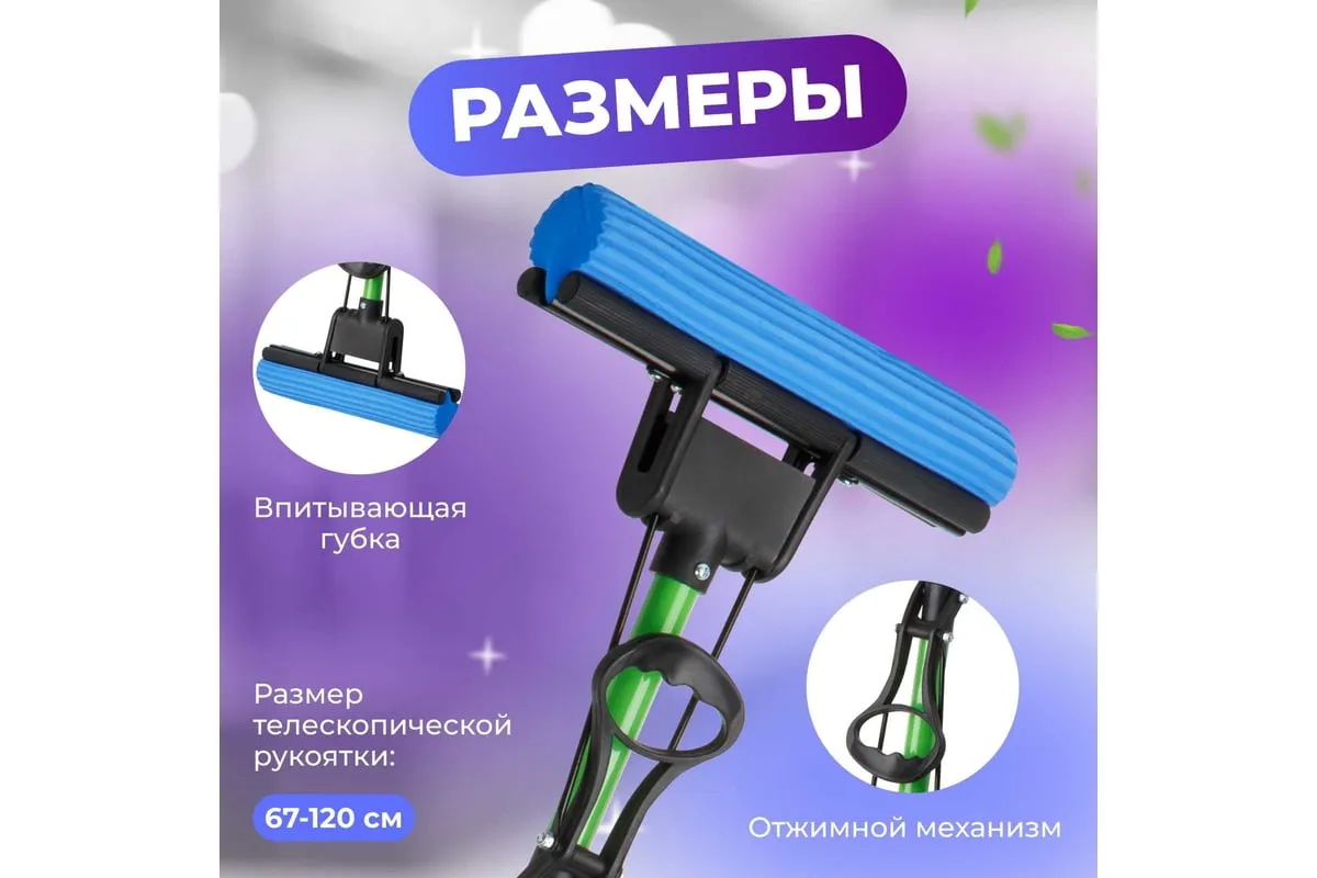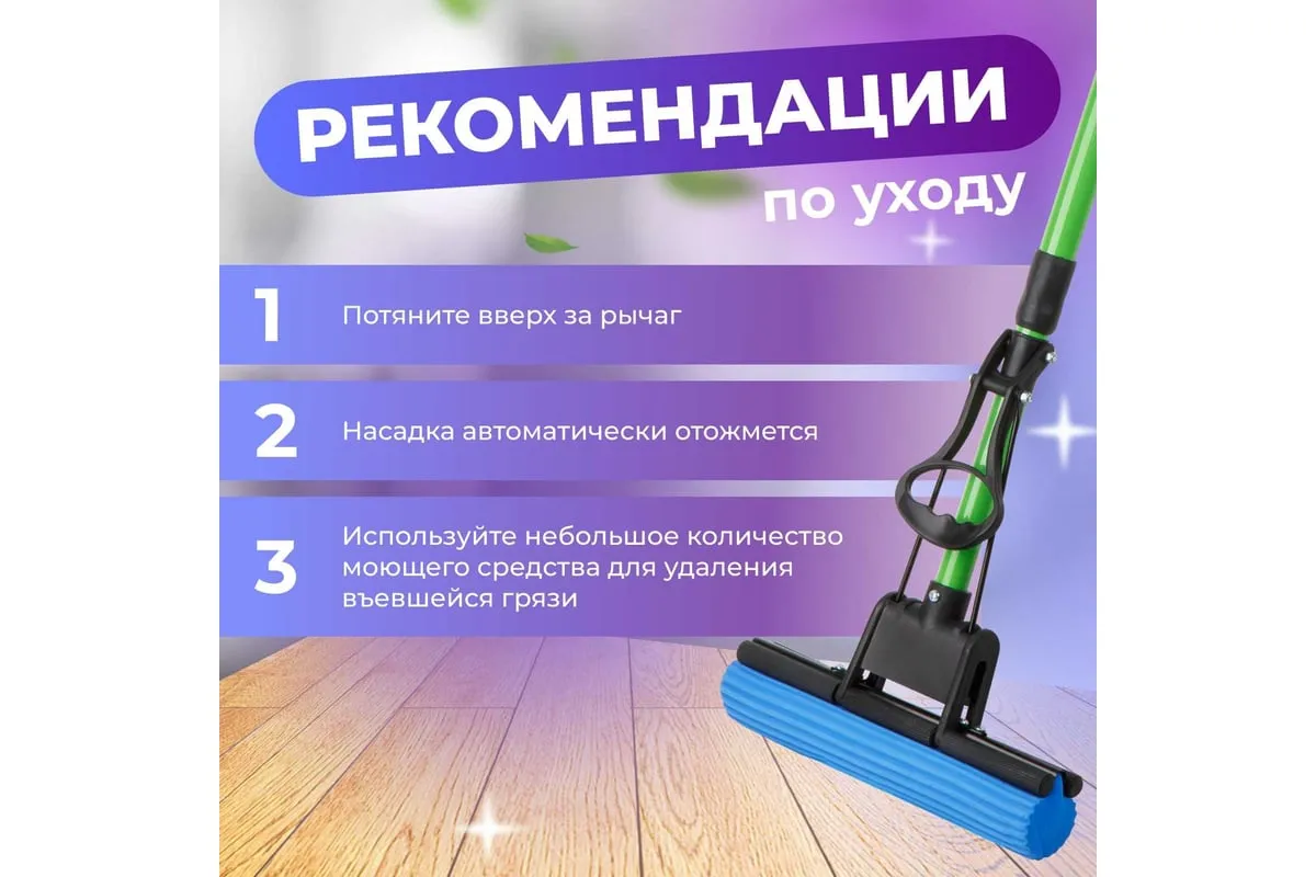 Швабра для пола PERFECTO LINEA отжимная, зеленая 43-192210 предназначена для влажной уборки гладких поверхностей (пола, стен, потолков). Идеально подходит для мытья линолеума, паркета, ламината, кафеля и мрамора. Более гигиенично собирает и удерживает пыль, грязь, жидкость. Рекомендации по уходу:достаточно потянуть вверх за рычаг и насадка автоматически отожмется. Используйте небольшое количество моющего средства для удаления въевшейся грязи.