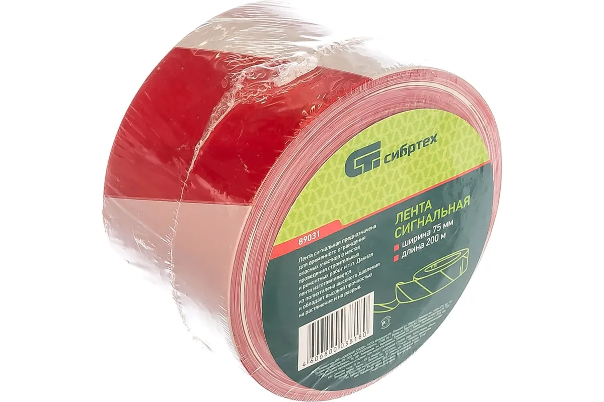 Сигнальная лента Сибртех 89031 шириной 75 мм, 200 м в намотке, позволяет оградить опасную зону на строительной площадке, в парке, на дороге и т.д. Красно-белая лента используется для обозначения временной опасности. Она видна издалека, что позволяет направить поток людей в другую сторону, перекрыв доступ к участку.
