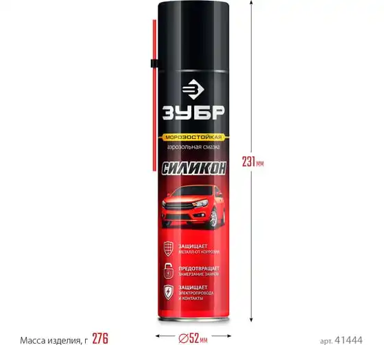 Силиконовая смазка ЗУБР 41444 предназначена для смазывания различных подвижных деталей и поверхностей. Морозостойкая. Объем 400 мл.