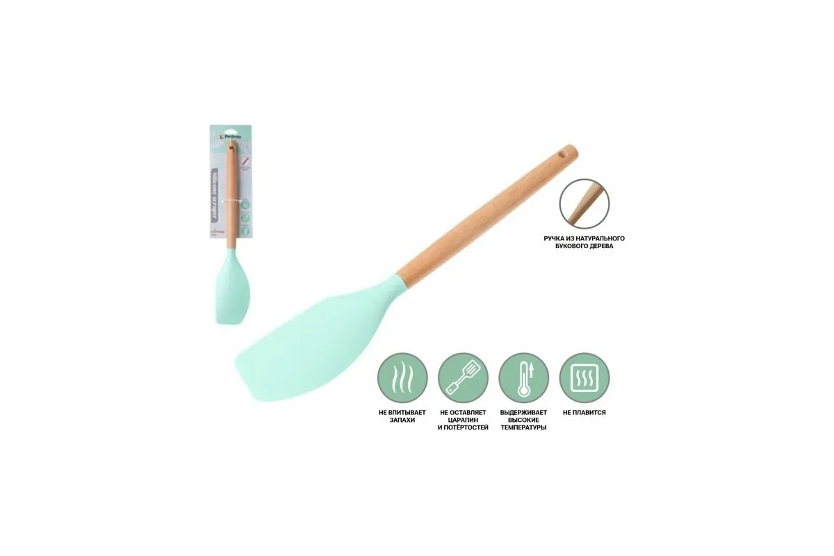Силиконовая лопатка PERFECTO LINEA EcoVillage бирюзовая 21-326112 предназначена для перемешивания и переворачивания продуктов в процессе жарки или тушения. а также подачи готовых блюд. Лопатка выполнена из материала, который выдерживает высокие температурные нагрузки и полностью безопасна для здоровья человека. Не повреждает антипригарное покрытие кастрюль и сковородок. Лопатка легко моется и быстро сохнет, не впитывает посторонние запахи.