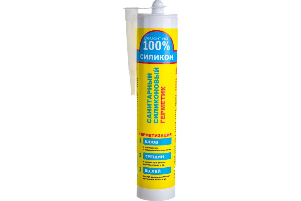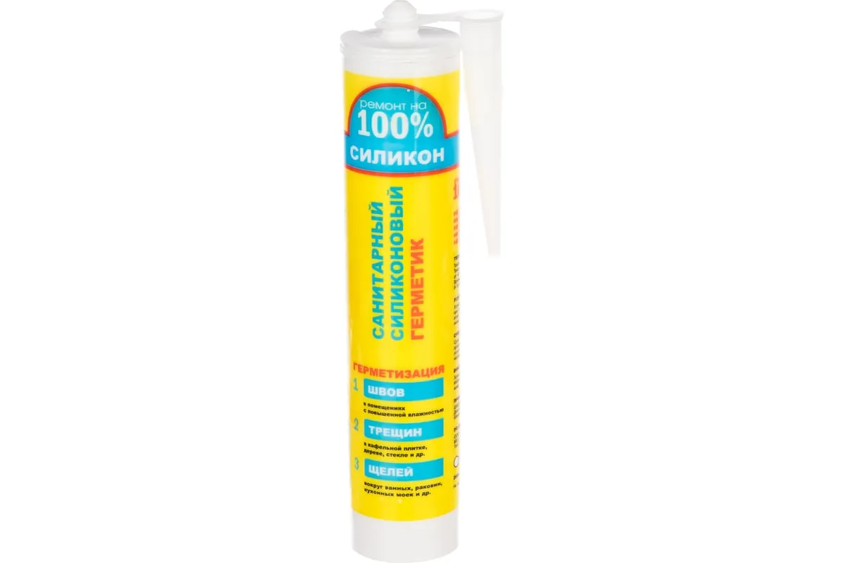 Силиконовый санитарный герметик «Ремонт на 100%» — профессиональное решение для герметизации швов в условиях повышенной влажности и экстремальных температур. Однокомпонентный состав кислотного типа содержит фунгициды, предотвращающие образование плесени и грибка, что делает его идеальным для ванных комнат, душевых кабин, бань, кухонь и других зон с агрессивными средами.