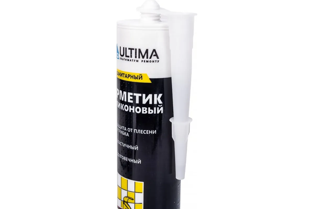 Силиконовый санитарный герметик Ultima S белый 280ml H0804 предназначен для заполнения подвижных швов и монтажа сантехнического оборудования в помещениях с повышенной влажностью (бассейны, ванные комнаты, душевые кабины, кухни).