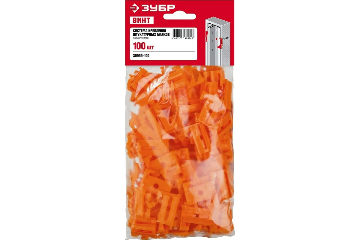 Система крепления штукатурных маяков ЗУБР Винт-100 100 шт 30955-100 значительно ускоряет и облегчает проведение отделочных работ. Благодаря точности установки маяков достигается существенная экономия стройматериалов.