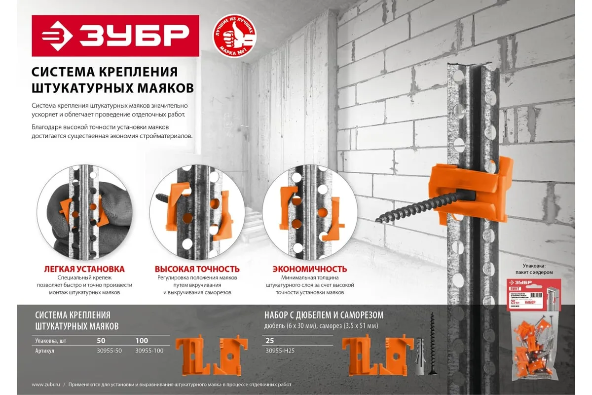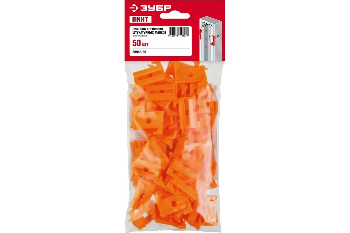 Система крепления штукатурных маяков ЗУБР Винт-50 50 шт 30955-50 значительно ускоряет и облегчает проведение отделочных работ. Благодаря точности установки маяков достигается существенная экономия стройматериалов.